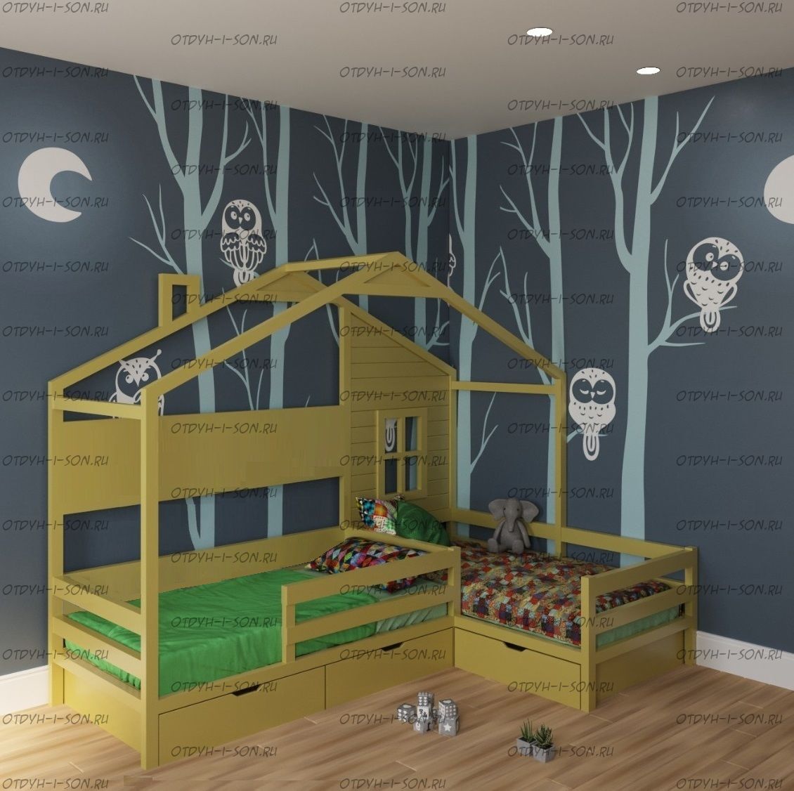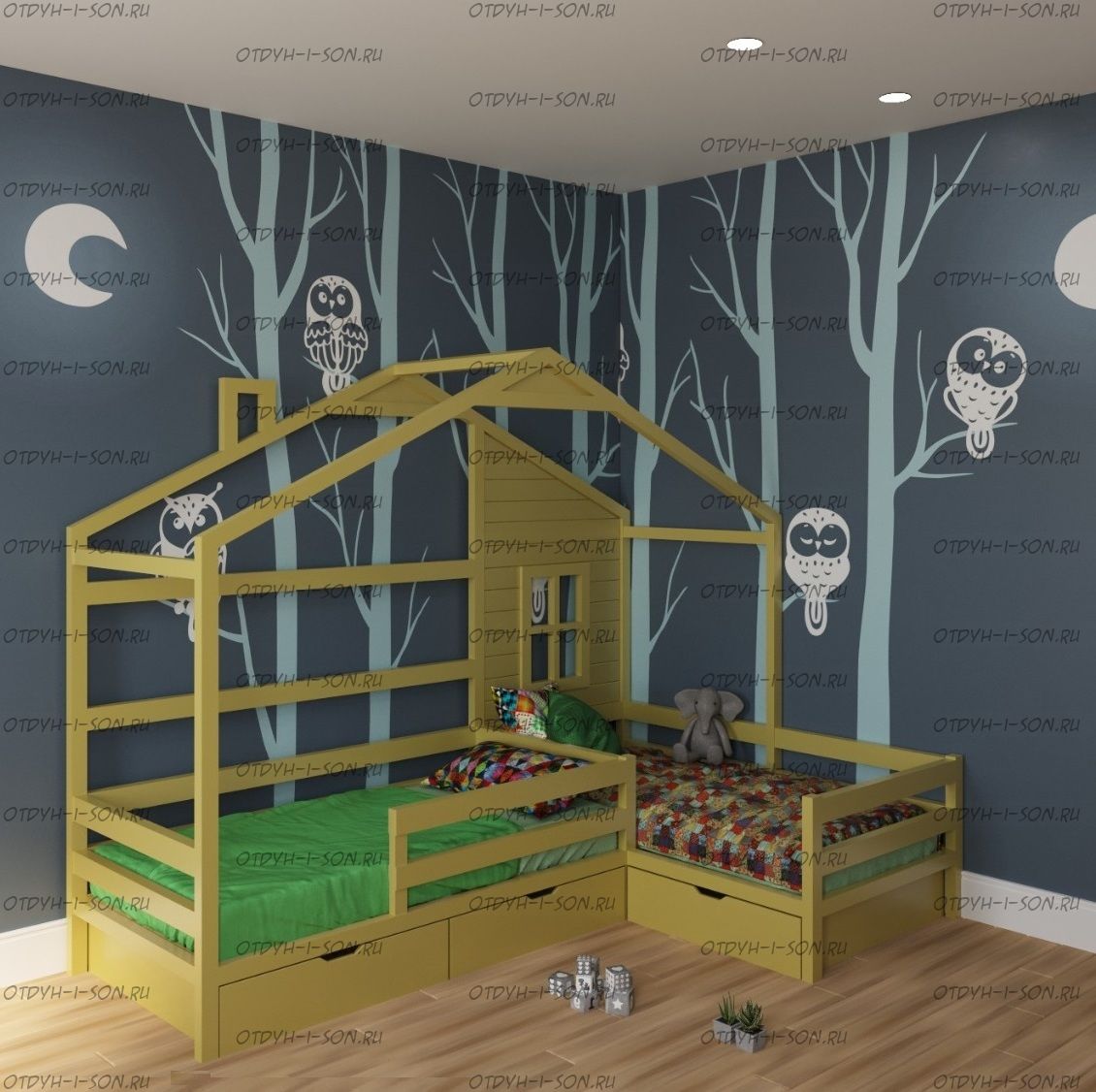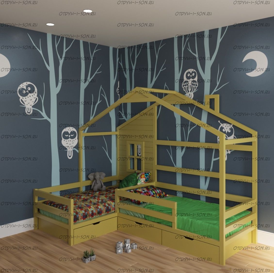Кровать Домик Угловой Fairy Land №42 (Для Двоих Детей) может быть изготовлена как кровать для новорожденного, любые размеры.