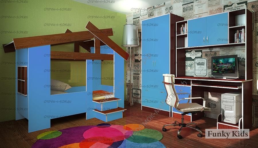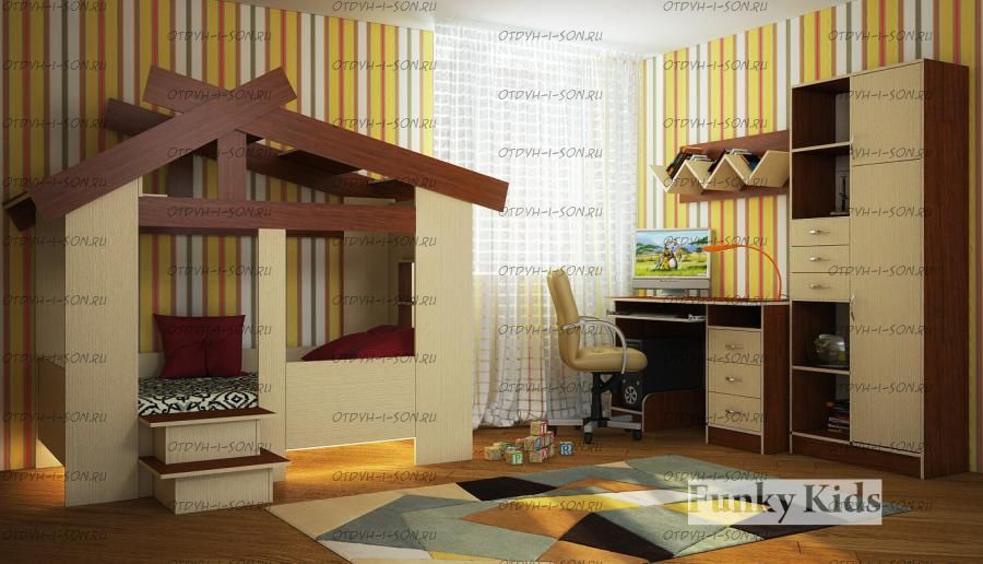 Кровать Домик Фанки Кидз 13/64 СВ + горка (закругленные верхние края крыши) Характеристики: Размер спального места: 80х170 Внешние габариты (ДхШхВ): 2170х864х179 Материал: ЛДСП 16 мм (Австрия, Egger). Вес: 80 кг. Объем: 0,25 м3 Цвет корпуса: Ольха, Розовый, Крем ваниль, Оранжевый, Салатовый, Дуб кремона, Голубой, Орех Цвет фасада (крыша): Орех