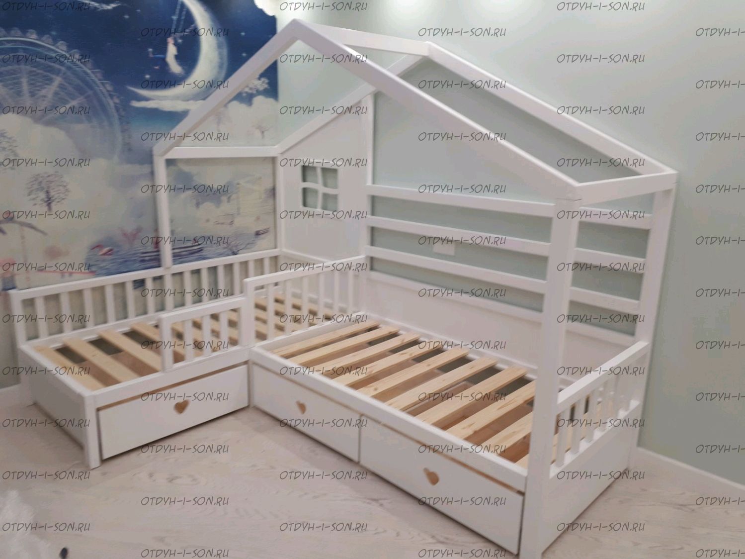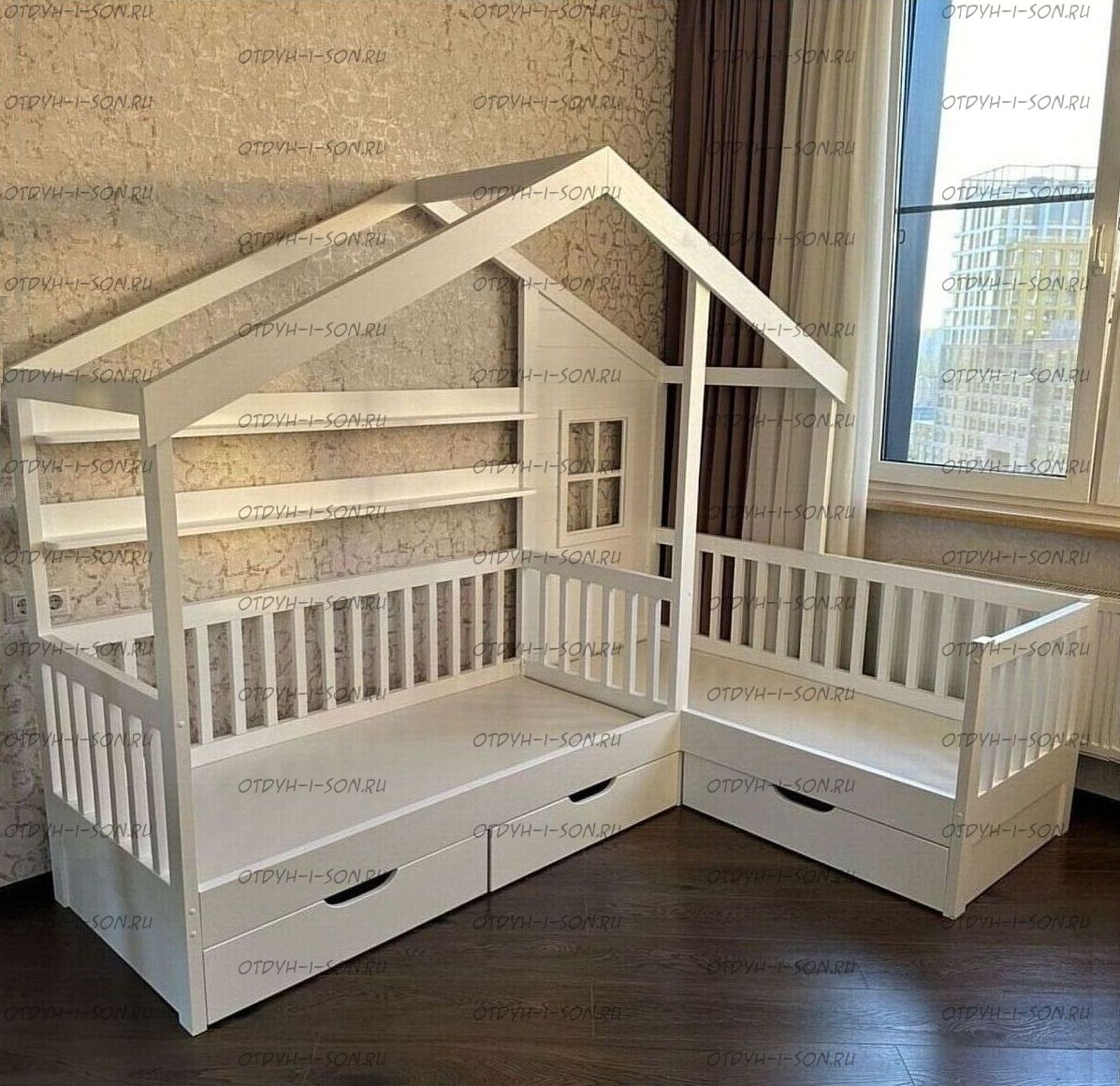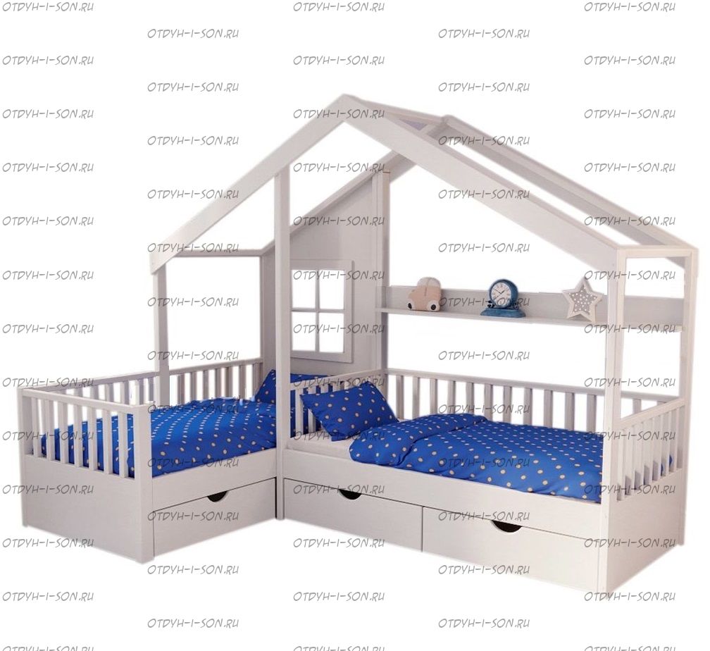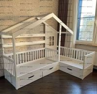 Кровать Домик угловая Fairy Land №18F (Для Двоих Детей) может быть изготовлена как кровать для новорожденного, любые размеры.