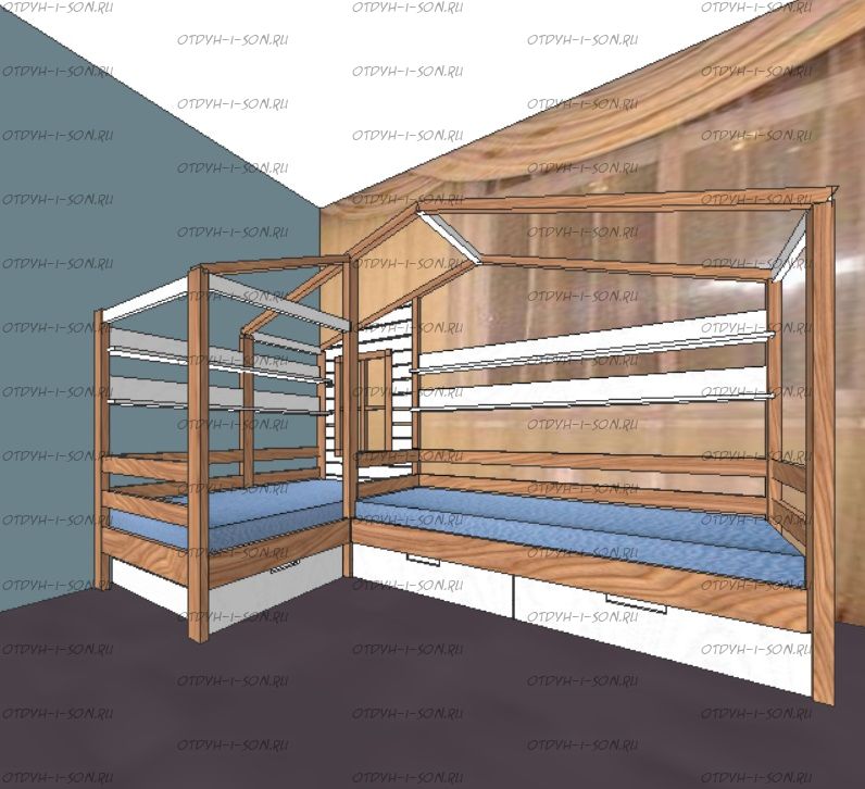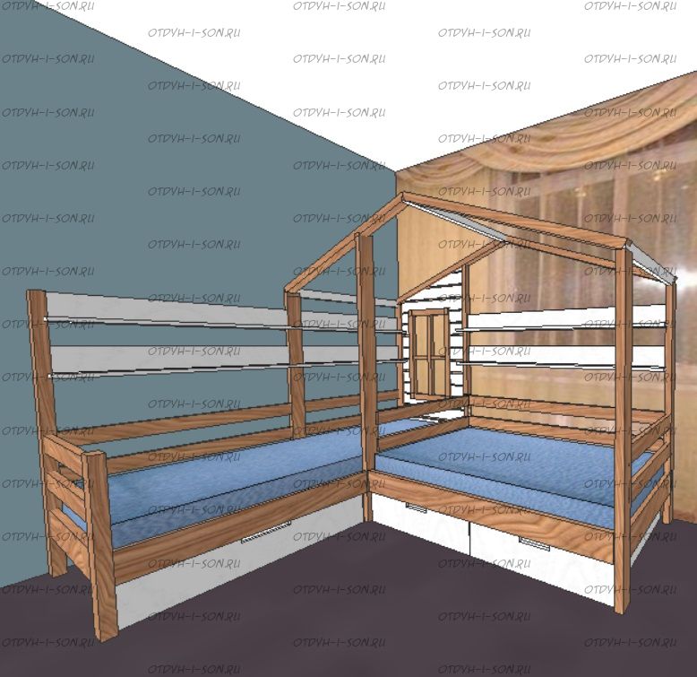 | Размеры изделия | Угловые домики по длинной стороне имеют следующие размеры: сумма длины и ширины двух спальных мест + 15 см. В случае ограниченного пространства в комнате просьба не считатьразмеры самостоятельно, а обратиться к нашим операторам. |