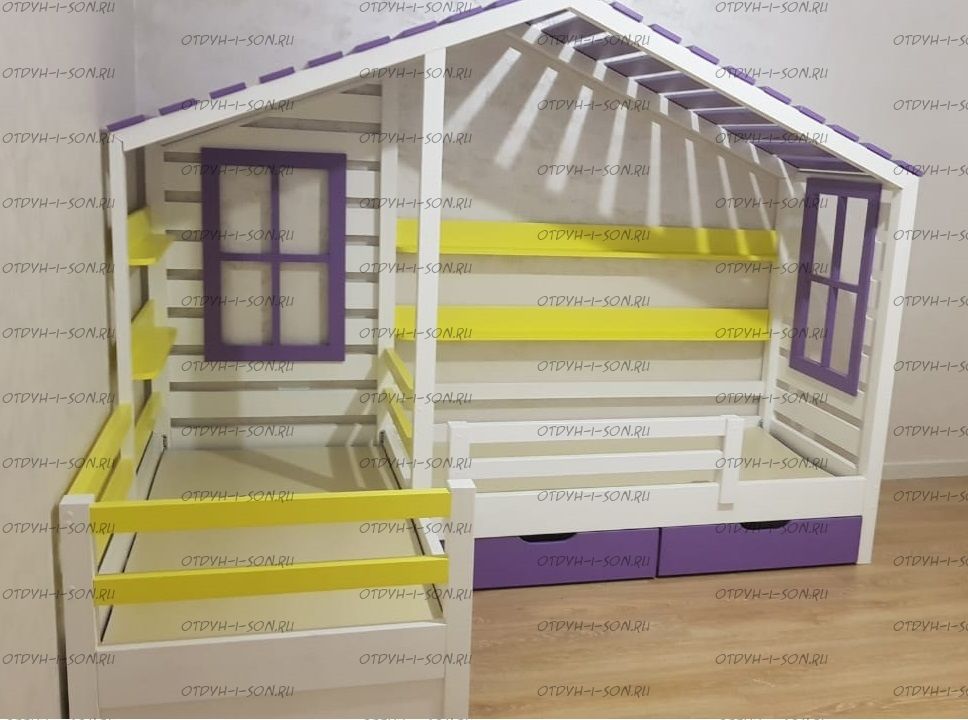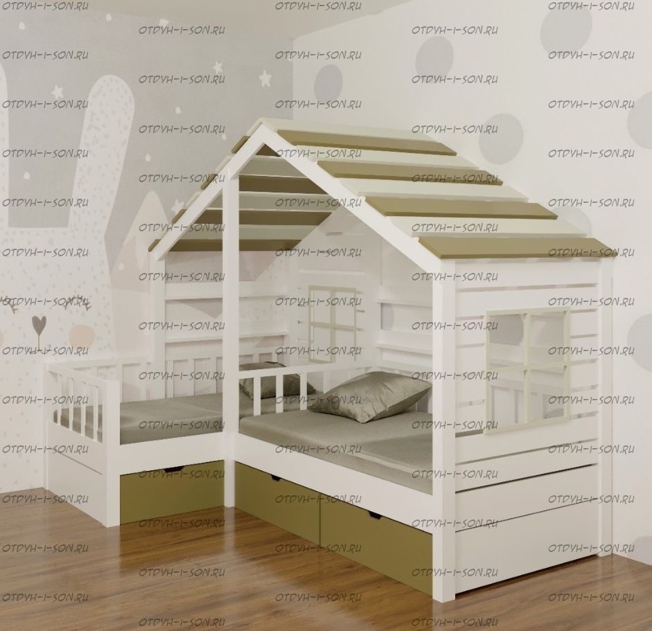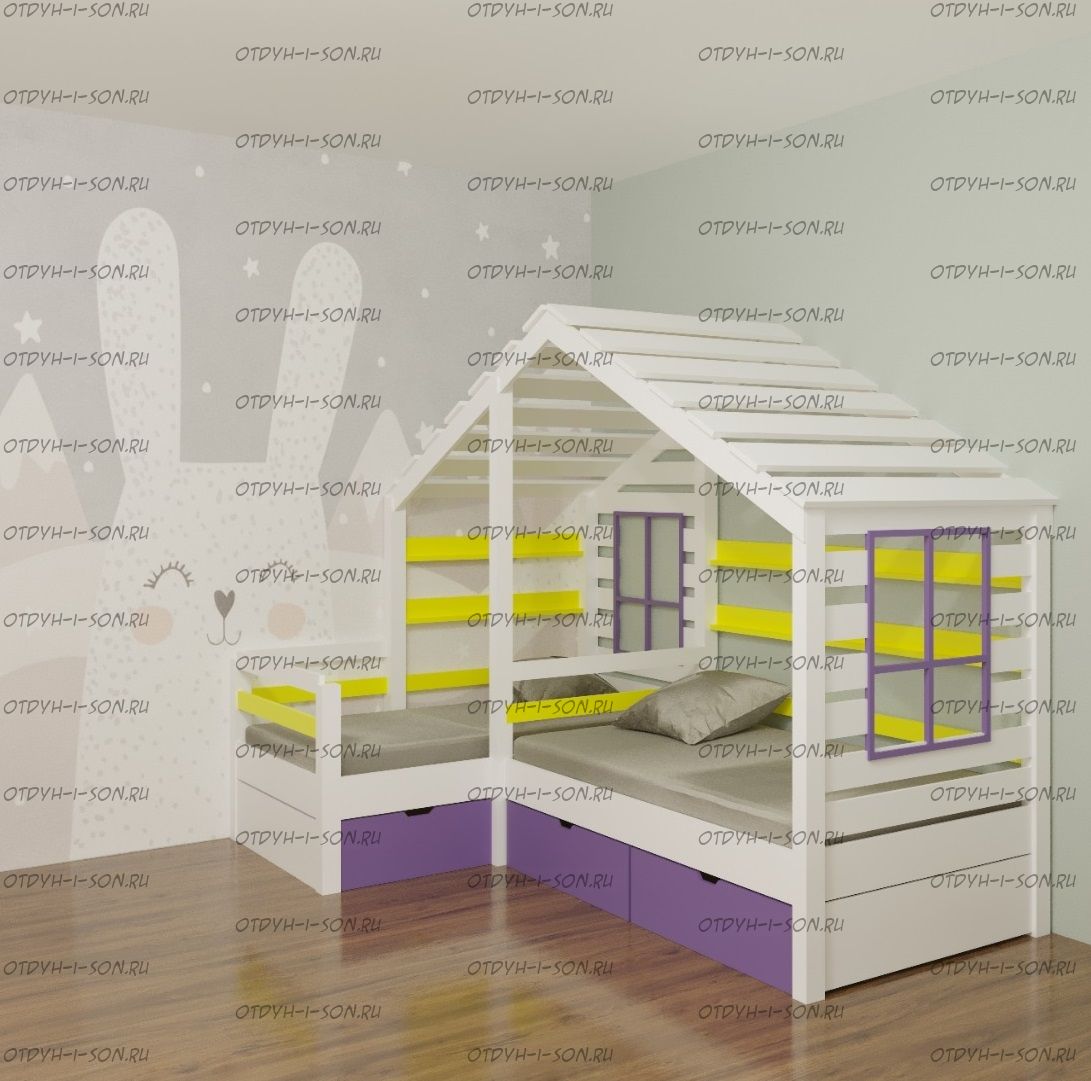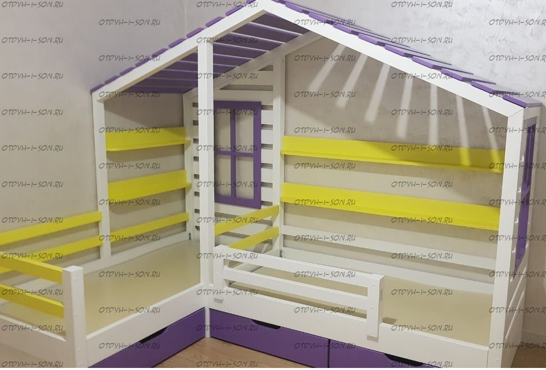 Кровать Домик угловой Fairy Land №26B (для двоих детей) из массива сосны, любые размеры