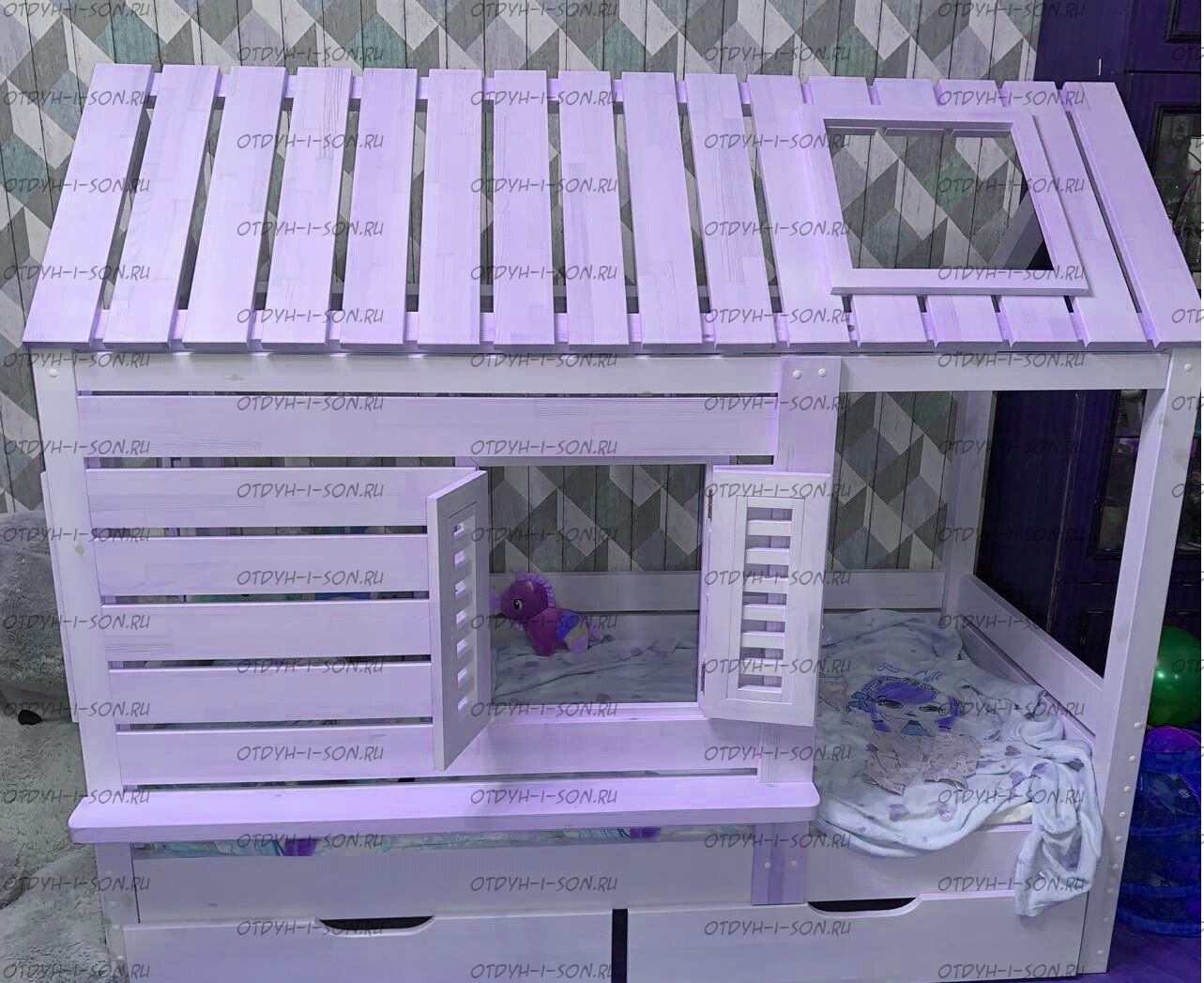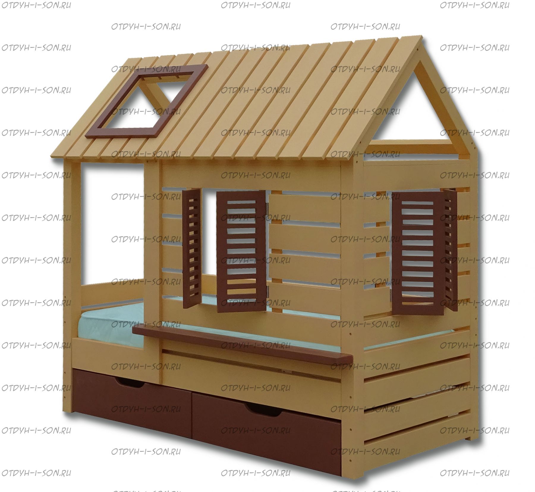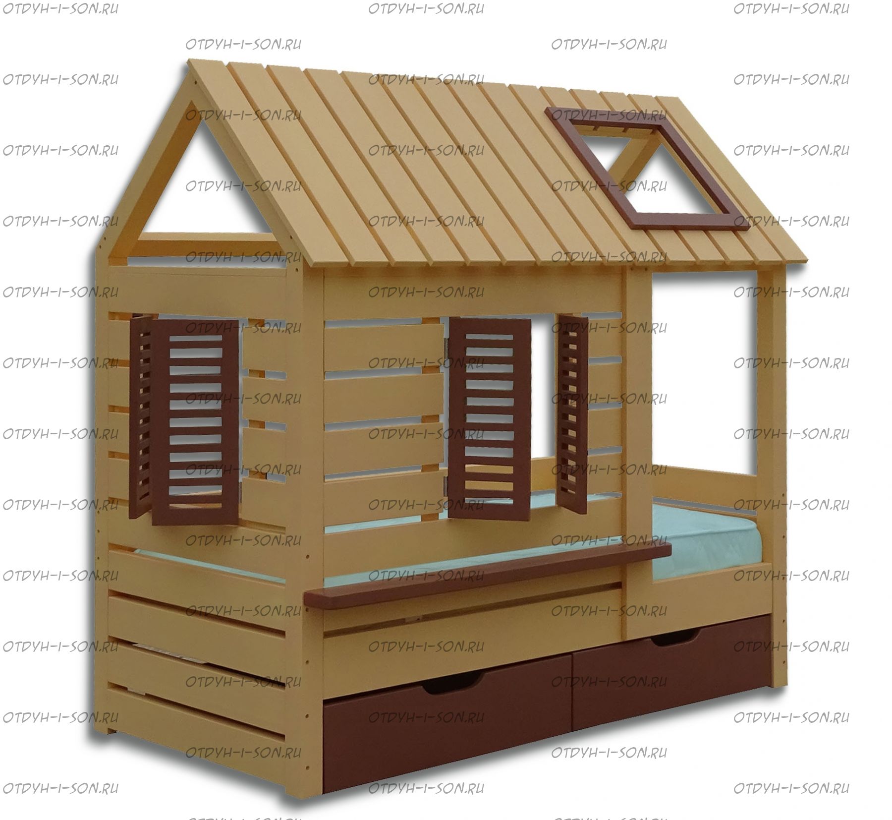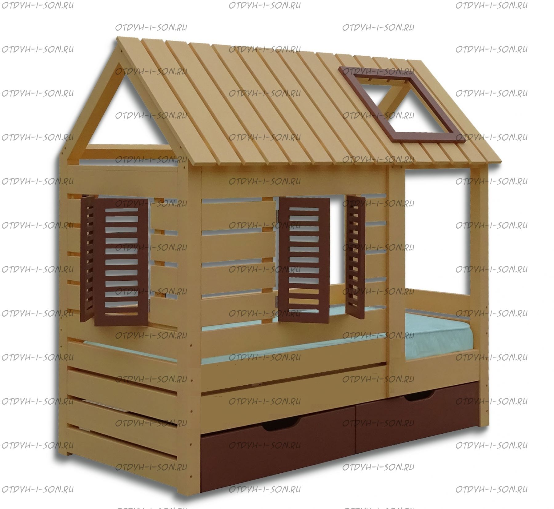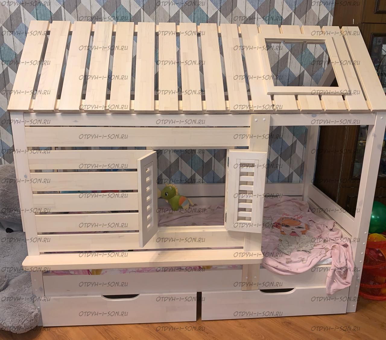 Кровать-Домик Simple Lux №29-3 Характеристики: Размер спального места: любые Изголовье: 170см Изножье: 170см Высота от пола до царги: 19см Ящики:1 комплект (2 шт.) 65 х 65 Спинка:массив сосны, березовая мебельная фанера 12мм Каркас:массив сосны Основание:поперечные брусья массив, ДВП 4-5мм Ящики каркас:березовая фанера 12мм, дно ДВП 4-5мм, выкатная система (4 колесика) - к кровати не фиксируется Ящики фасад:березовая мебельная фанера 12-16мм, массив сосны Покрытие:Sayarlack (Италия), Renner (Италия) Материал: массив сосны 2 подкроватных ящика с колесиками, ящики не закрепляются в кровати и могут выдвигаться с любой стороны кровати (ящики докупаются отдельно). В базовом варианте с тыльной стороны ящиков декоративной планки не предусмотрено Основание под матрас реечное Внимание: возможно увеличение высоты бортиков кровати! Цвет: орех, бук, венге, груша, дуб, каштан, клен, красное дерево, махагон, ольха, сосна, белый (эмаль), слоновая кость (эмаль) Комплектация модели: Спинка 2 штуки, Царга 2 штуки, Планки 3 штуки, Декоративные панели 3 штуки, Подматрасники 1 комплект, ДВП 1 штука, Ящики 1 комплект (2 шт)