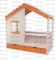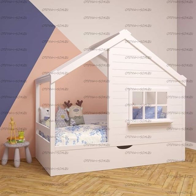 Кровать-Домик Calipso Характеристики: Размер спального места: любые Изголовье: 170см Изножье: 170см Высота от пола до царги: 19см Ящики:1 комплект (2 шт.) 65 х 65 Спинка:массив сосны, березовая мебельная фанера 12мм Каркас:массив сосны Основание:поперечные брусья массив, ДВП 4-5мм Ящики каркас:березовая фанера 12мм, дно ДВП 4-5мм, выкатная система (4 колесика) - к кровати не фиксируется Ящики фасад:березовая мебельная фанера 12-16мм, массив сосны Покрытие:Sayarlack (Италия), Renner (Италия) Материал: массив сосны 2 подкроватных ящика с колесиками, ящики не закрепляются в кровати и могут выдвигаться с любой стороны кровати (ящики докупаются отдельно). В базовом варианте с тыльной стороны ящиков декоративной планки не предусмотрено Основание под матрас реечное Внимание: возможно увеличение высоты бортиков кровати! Цвет: орех, бук, венге, груша, дуб, каштан, клен, красное дерево, махагон, ольха, сосна, белый (эмаль), слоновая кость (эмаль) Комплектация модели: Спинка 2 штуки, Царга 2 штуки, Планки 3 штуки, Декоративные панели 3 штуки, Подматрасники 1 комплект, ДВП 1 штука, Ящики 1 комплект (2 шт)
