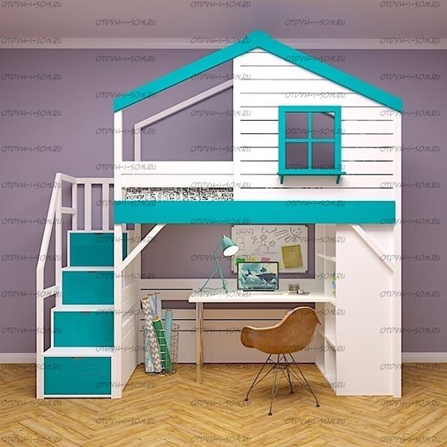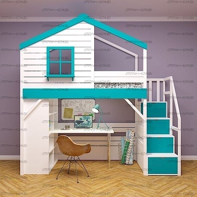 Кровать-чердак Домик Fairy Land Roof №8 (любые размеры) Размеры: Стелаж ШхГхВ: 90х40х130 см, 8 полок, Стол ШхДхВ: 45х100х73-75 см. Характеристики: Размер спального места: 70Х160, 70Х170, 70Х180, 70Х190, 80Х160, 80Х170, 80Х180, 80Х190, 90Х160, 90Х170, 90Х180, 90Х190 идут по одной цене. Нестандарт: да, возможно, изготавливаем мебель по Вашим проектам Размер, цвет и декор также могут быть индивидуальны. Материалы: массив дерева