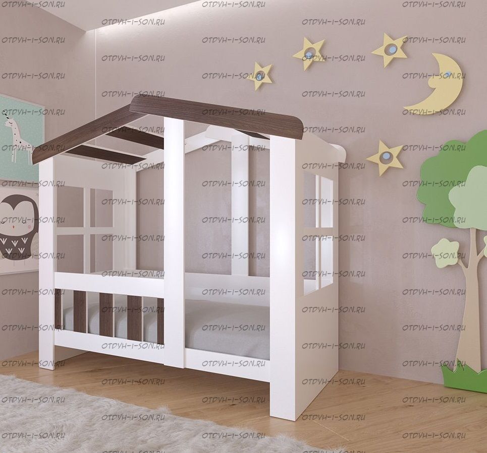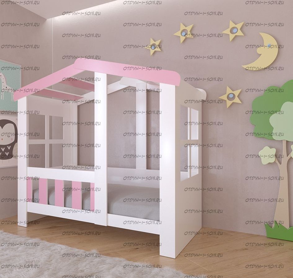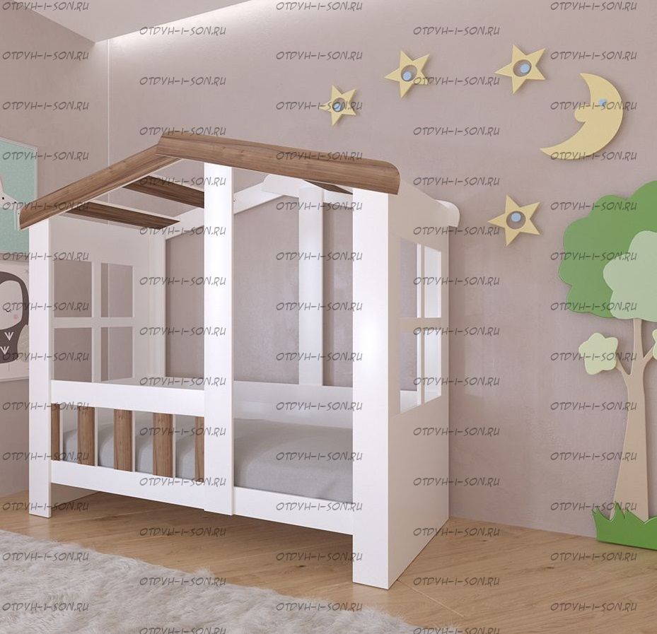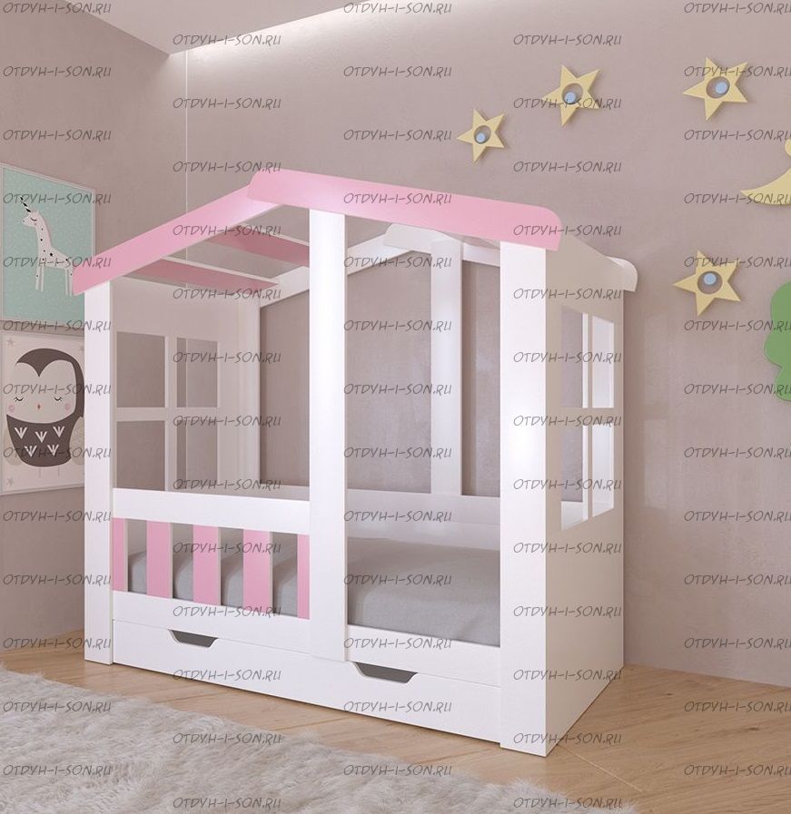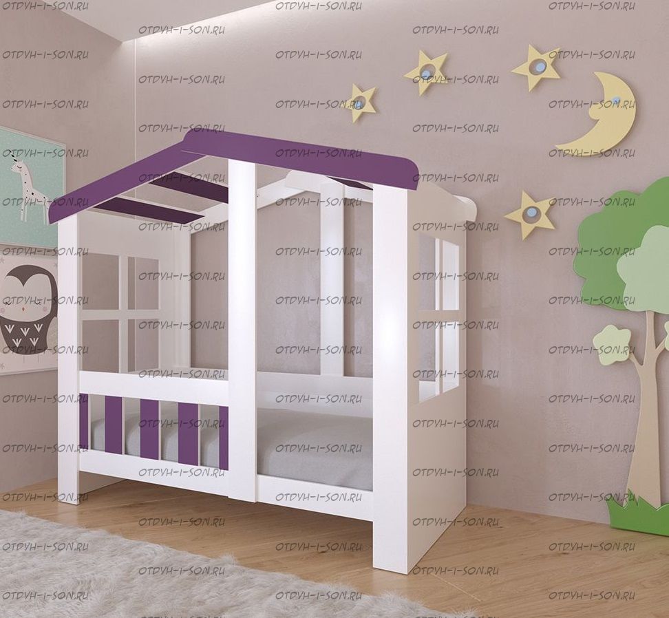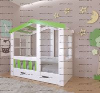 Кровать-Домик со спальным местом 800х1600, снизу которой, для полной функциональности, добавлены один ящик с двумя отделениями куда можно поместить мелочи, игрушки и прочих вещи. Важной особенностью данной модели является крыша, что позволит ребенку играть и чувствовать себя по настоящему счастливым в "своем" домике, мире.