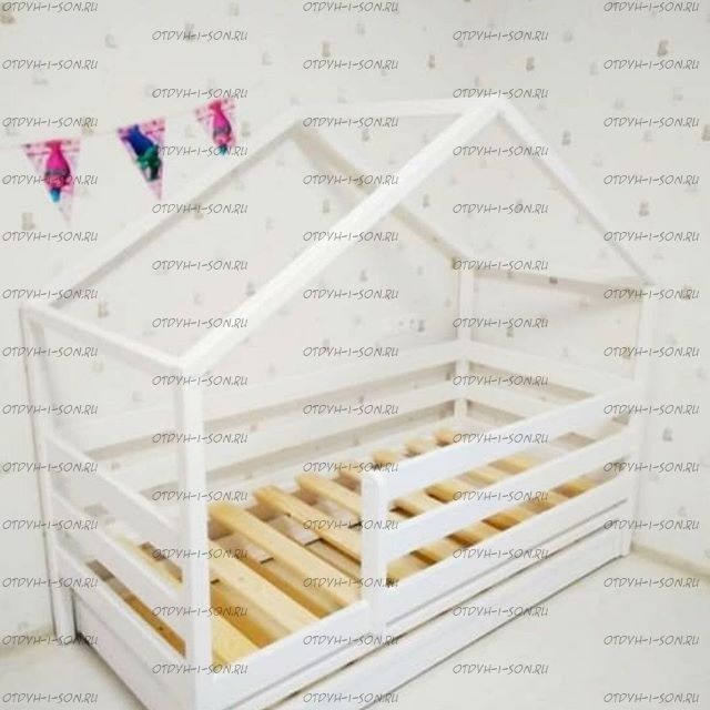 Кровать-Домик Fairy Land Calipso №4 Характеристики: Размер спального места: любые Изголовье: 170см Изножье: 170см Высота от пола до царги: 19см Ящики:1 комплект (2 шт.) 65 х 65 Спинка:массив сосны, березовая мебельная фанера 12мм Каркас:массив сосны Основание:поперечные брусья массив, ДВП 4-5мм Ящики каркас:березовая фанера 12мм, дно ДВП 4-5мм, выкатная система (4 колесика) - к кровати не фиксируется Ящики фасад:березовая мебельная фанера 12-16мм, массив сосны Покрытие:Sayarlack (Италия), Renner (Италия) Материал: массив сосны 2 подкроватных ящика с колесиками, ящики не закрепляются в кровати и могут выдвигаться с любой стороны кровати (ящики докупаются отдельно). В базовом варианте с тыльной стороны ящиков декоративной планки не предусмотрено Основание под матрас реечное Внимание: возможно увеличение высоты бортиков кровати! Цвет: орех, бук, венге, груша, дуб, каштан, клен, красное дерево, махагон, ольха, сосна, белый (эмаль), слоновая кость (эмаль) Комплектация модели: Спинка 2 штуки, Царга 2 штуки, Планки 3 штуки, Декоративные панели 3 штуки, Подматрасники 1 комплект, ДВП 1 штука, Ящики 1 комплект (2 шт)