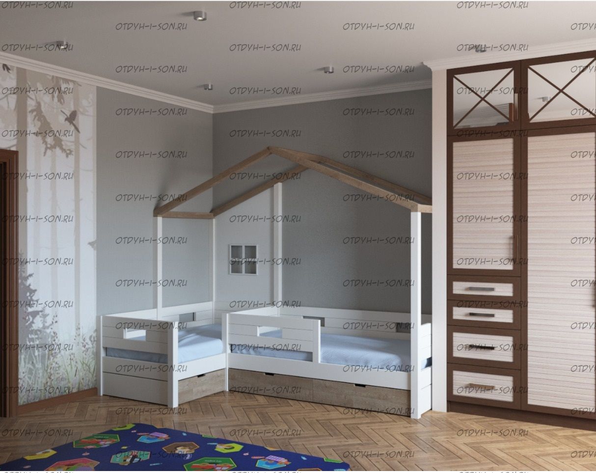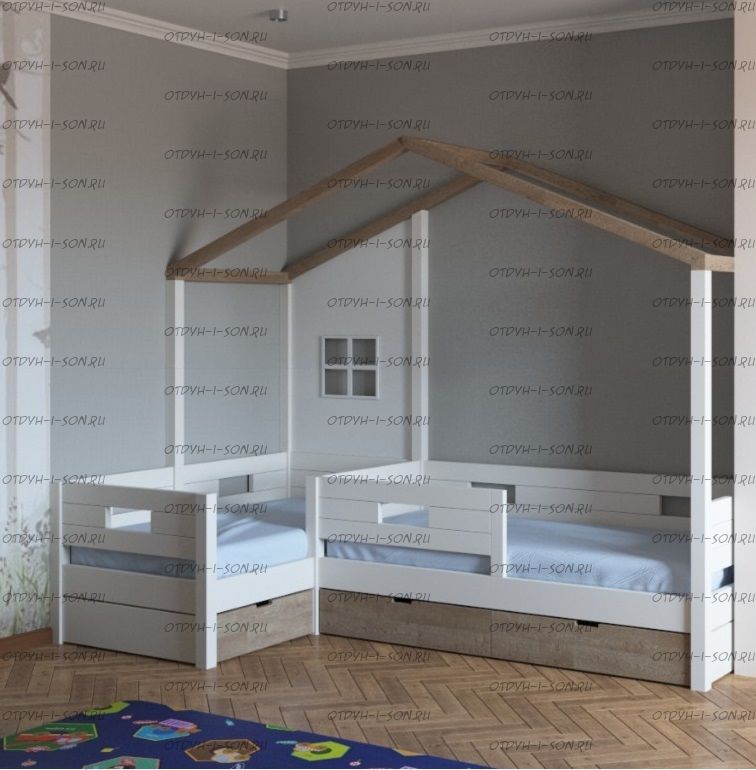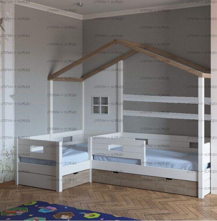 Кровать Домик угловой Fairy Land №2 (для двоих детей) может быть изготовлена как кровать для новорожденного, любые размеры.