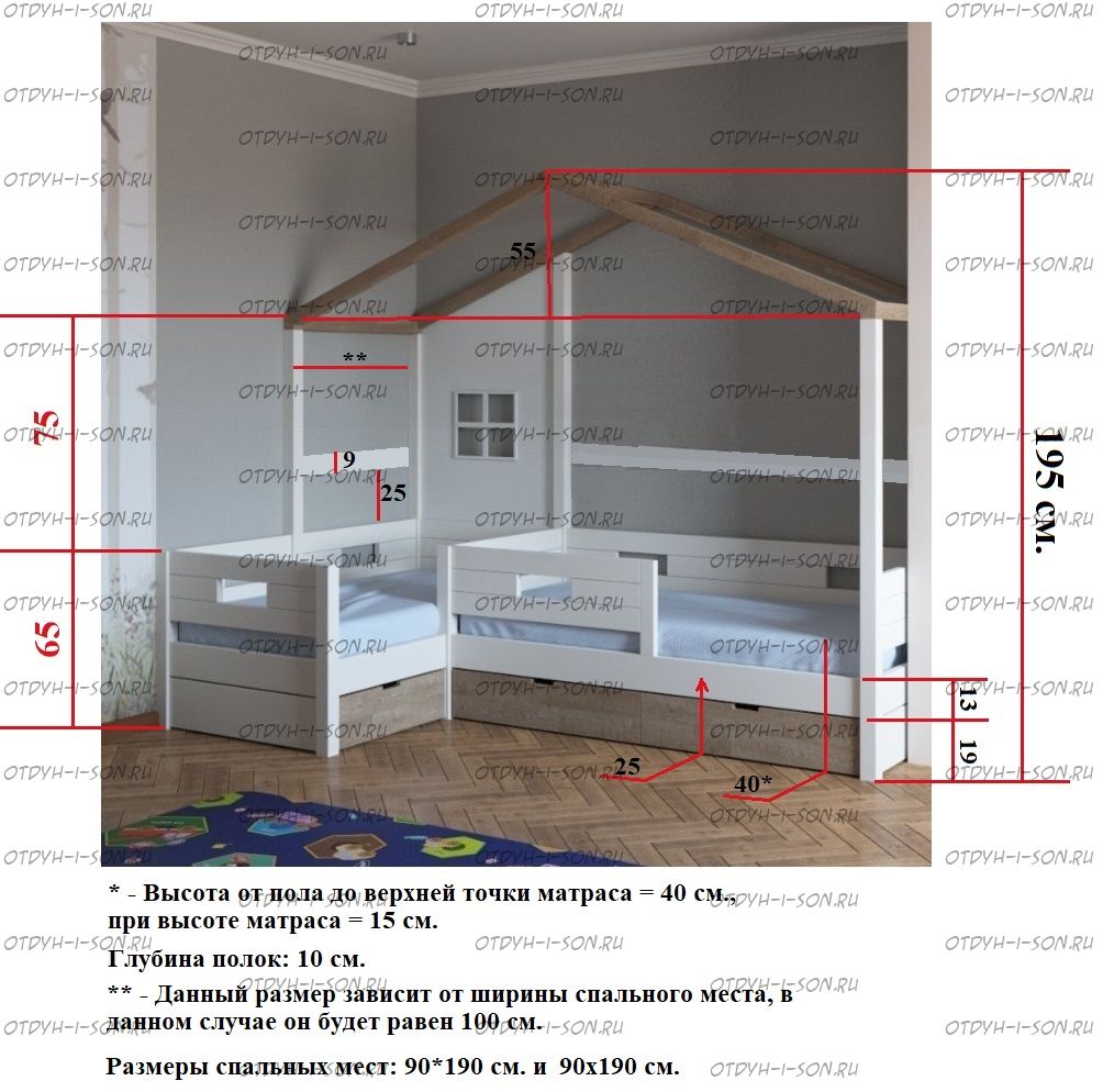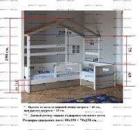 | Размеры изделия | Угловые домики по длинной стороне имеют следующие размеры: сумма длины и ширины двух спальных мест + 15 см. В случае ограниченного пространства в комнате просьба не считатьразмеры самостоятельно, а обратиться к нашим операторам. |