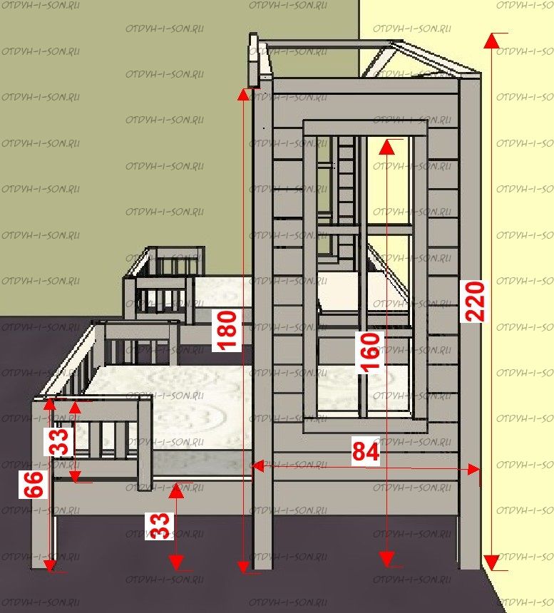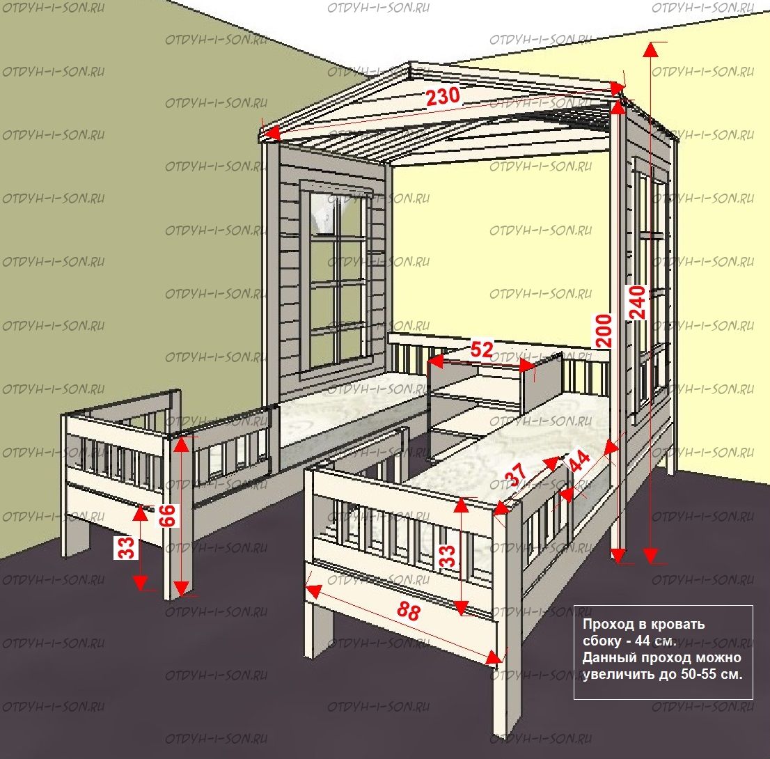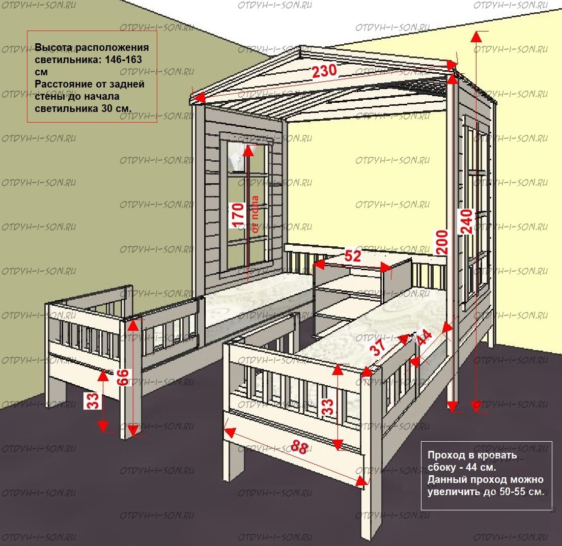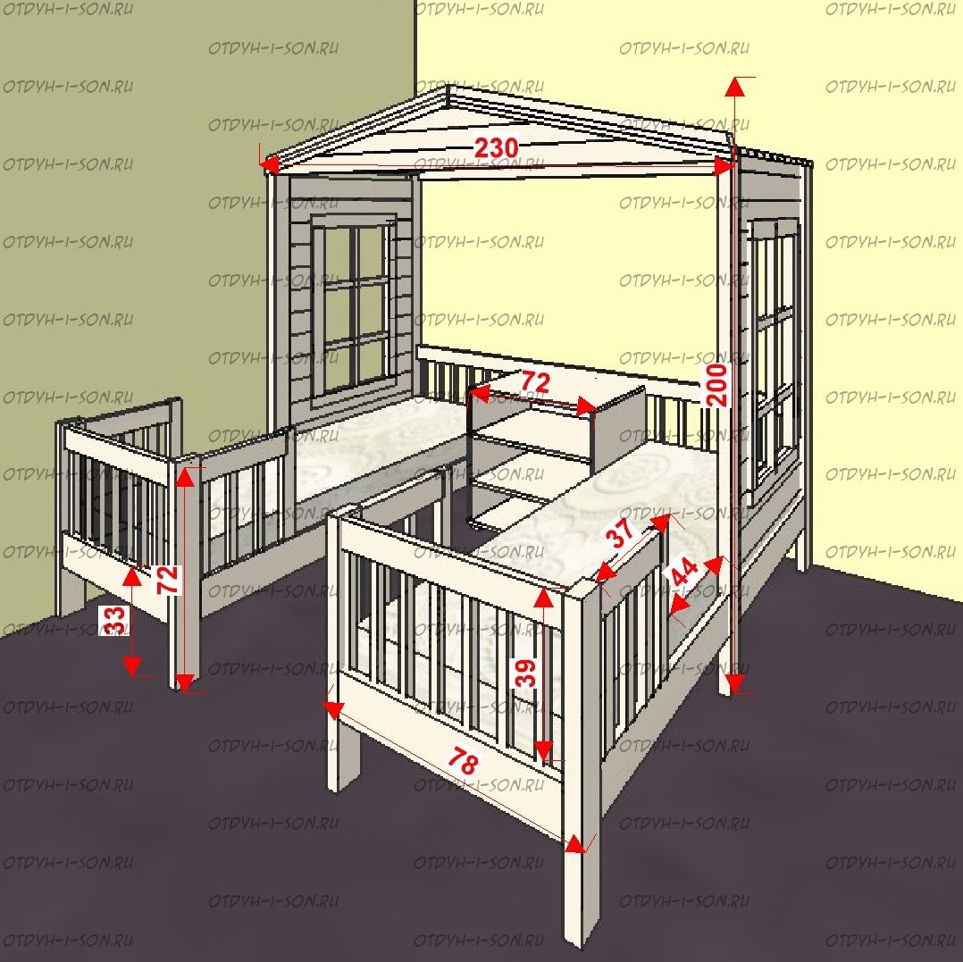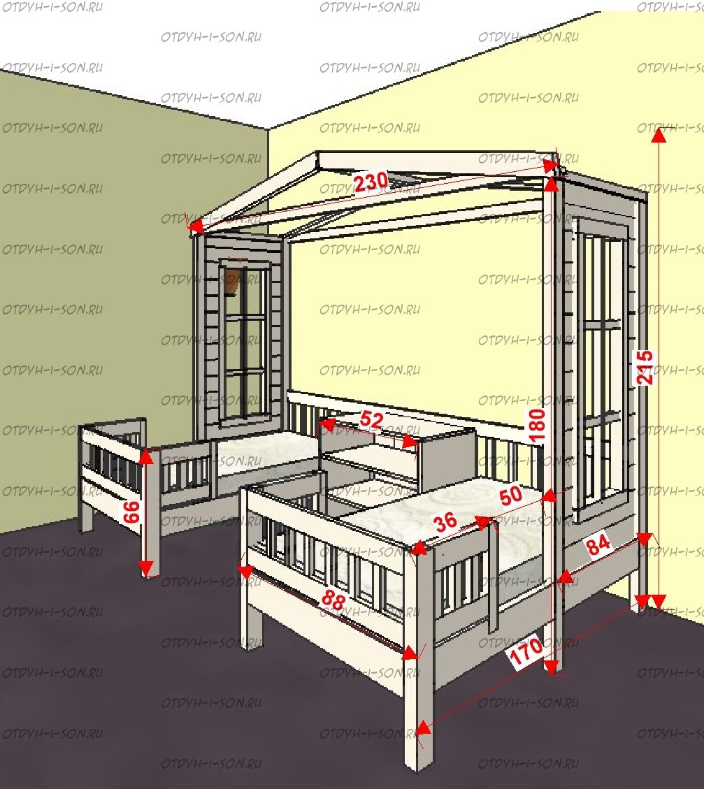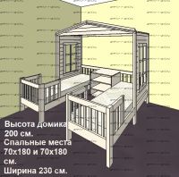 | Размеры изделия | Угловые домики по длинной стороне имеют следующие размеры: сумма длины и ширины двух спальных мест + 15 см. В случае ограниченного пространства в комнате просьба не считатьразмеры самостоятельно, а обратиться к нашим операторам. |