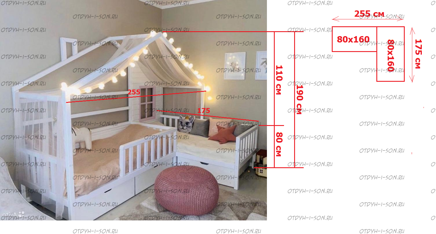 | Размеры изделия | Угловые домики по длинной стороне имеют следующие размеры: сумма длины и ширины двух спальных мест + 15 см. В случае ограниченного пространства в комнате просьба не считатьразмеры самостоятельно, а обратиться к нашим операторам. |