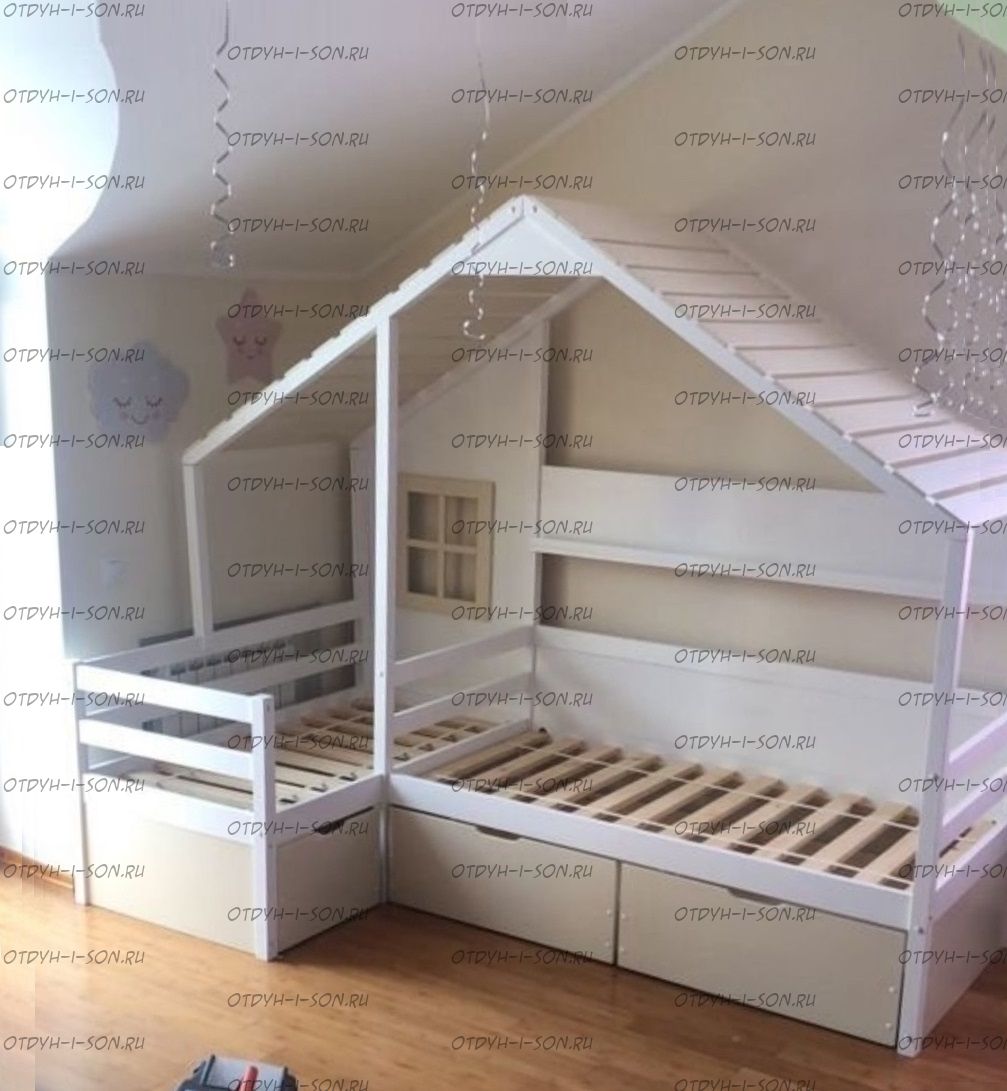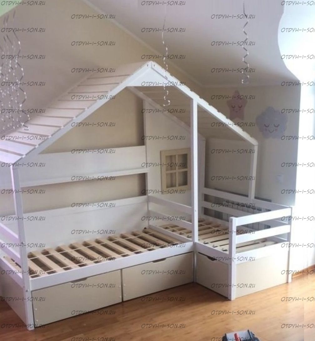 Кровать Домик Угловой Fairy Land (Для Двоих Детей). На дополнительных фотографиях представлены варианты исполнения данной кровати. Характеристики: Размер спального места А: 70Х160, 70Х170, 70Х180, 70Х190, 80Х160, 80Х170, 80Х180, 80Х190, 90Х160, 90Х170, 90Х180, 90Х190 Размер спального места Б: 70Х160, 70Х170, 70Х180, 70Х190, 80Х160, 80Х170, 80Х180, 80Х190, 90Х160, 90Х170, 90Х180, 90Х190 Возможно изготовление по Вашим размерам Материалы: массив дерева Стандартные материалы: массив сосны Возможно изготовление кровати-домика углового из массива березы, бука или дуба, но стоимость кровати-домика в таком случае значительно увеличится. Размеры, цвет и декор также могут быть индивидуальны. Возможна покраска в два или три цвета, а также в любые оттенки RAL