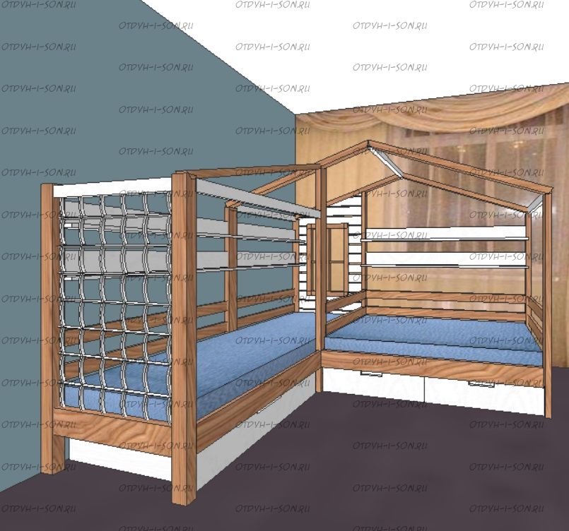 | Размеры изделия | Угловые домики по длинной стороне имеют следующие размеры: сумма длины и ширины двух спальных мест + 15 см. В случае ограниченного пространства в комнате просьба не считатьразмеры самостоятельно, а обратиться к нашим операторам. |