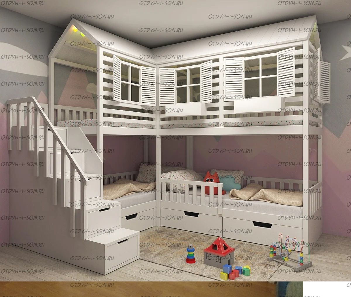 | Размеры изделия | Угловые домики по длинной стороне имеют следующие размеры: сумма длины и ширины двух спальных мест + 15 см. В случае ограниченного пространства в комнате просьба не считатьразмеры самостоятельно, а обратиться к нашим операторам. |