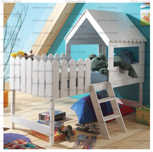 Кровать-чердак Домик Sidney №7, любые размеры и цвета, массив