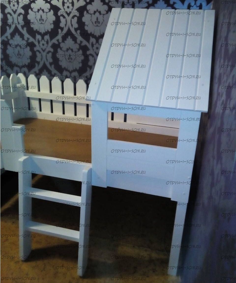 Кровать-чердак Домик Sidney №7, любые размеры и цвета, массив Характеристики: Размер спального места: 70Х160, 70Х180, 70Х190, 70х200, 80Х160, 80Х180, 80Х190, 80х200, 90Х160, 90Х180, 90Х190, 90х200 см. Нестандарт: да, возможно, изготавливаем мебель по Вашим проектам Размер, цвет и декор также могут быть индивидуальны. Материалы: массив дерева