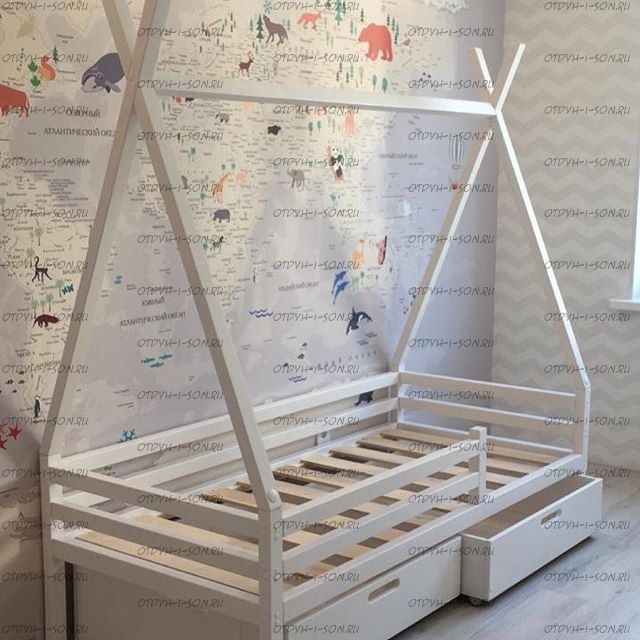 Кровать Домик Шалаш, массив, любые размеры Характеристики: Размер спального места: 70Х160, 70Х180, 70Х190, 70х200, 80Х160, 80Х180, 80Х190, 80х200, 90Х160, 90Х180, 90Х190, 90х200 см. Нестандарт: да, возможно, изготавливаем мебель по Вашим проектам Размер, цвет и декор также могут быть индивидуальны. Материалы: массив дерева
