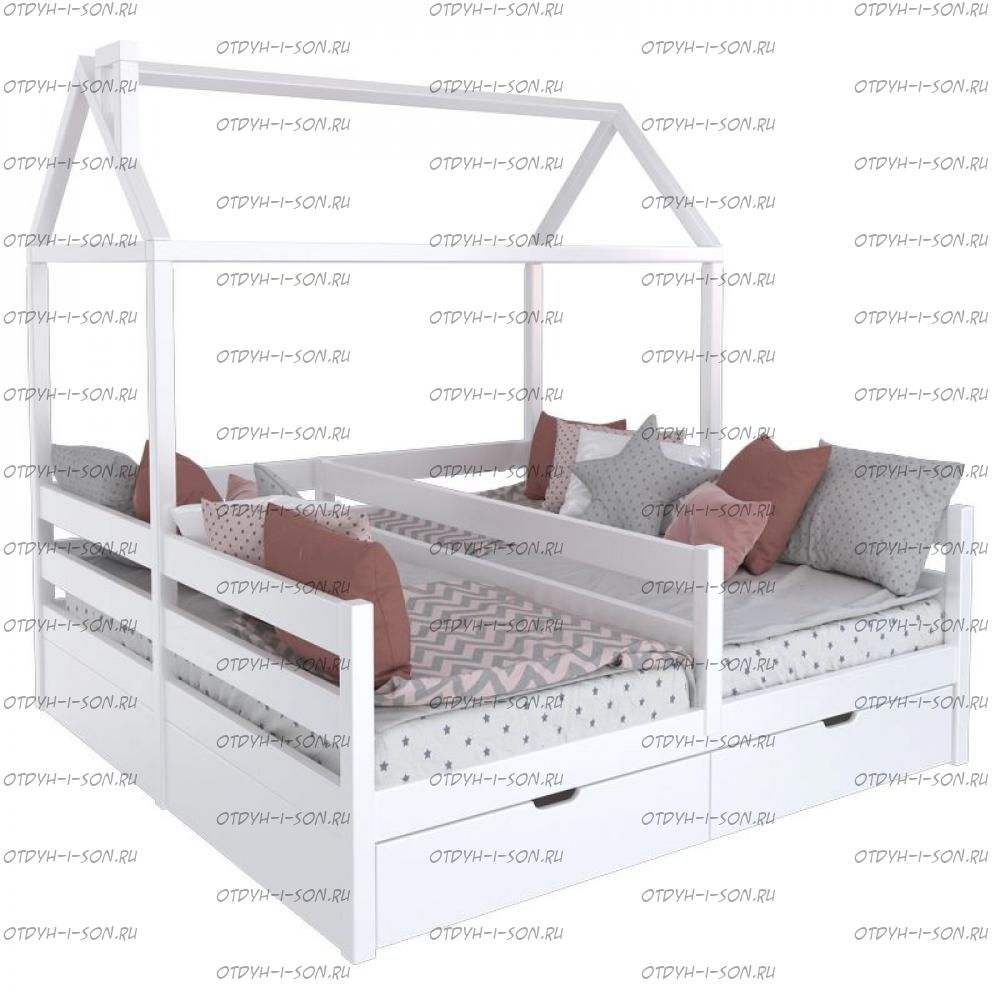 Кровать Домик Butterfly №11D (для двоих детей) может быть выполнена как кровать для новорожденных, в таком случае кровать дополняется высокими бортиками с вертикально расположенными планками. Характеристики: Размер каждого спального места: 70Х160, 70Х170, 70Х180, 70Х190, 80Х160, 80Х170, 80Х180, 80Х190, 90Х160, 90Х170, 90Х180, Возможно изготовление по Вашим размерам Материалы: массив дерева Стандартные материалы: массив сосны Возможно изготовление кровати-домика из массива березы, бука или дуба, но стоимость кровати-домика в таком случае значительно увеличится. Размеры, цвет и декор также могут быть индивидуальны. Возможна покраска в два или три цвета, а также в любые оттенки RAL