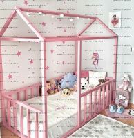 Кровать-домик Simple №4 - эта детская кровать из массива дерева может быть изготовлена как кровать для новорожденного, любые размеры Характеристики: Размер спального места: 80х160 или 80Х180 Внешние габариты (ДхШхВ): 166*87*h197 или 187*87*h197 см. Высота до спального места от пола Габаритная высота (высота спинок): Массив сосны с текстильным декором. Вес: Объем: Кол-во упаковок: Цвета корпуса: Натуральное дерево, Белый, Итальянский орех, Ольха, Венге Цвета текстильного декора: розовый (основной), но можно выбирать и другие цвета или их сочетания. Цвета текстильных элементов дополнительные (возможно изготовление в этих цветах по Вашему выбору): 0 Белый, 4 Желтый, 5 Синий, 3 Светло-зеленый, 8 Серо-голубой, 15 Сирень, 20 Розовый, 39-1 Темно-бежевый, 40 Бежевый, 16 Красный