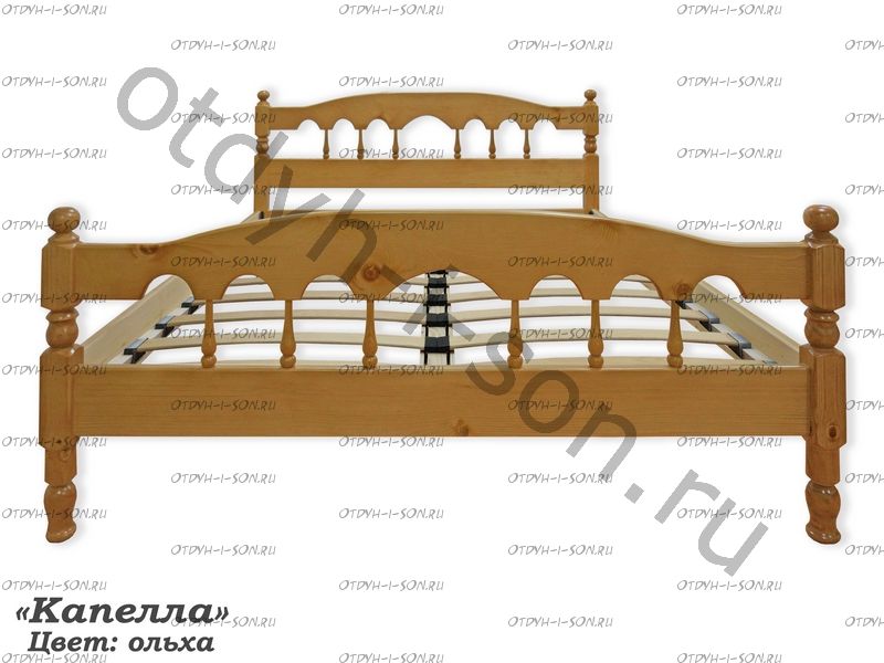 Кровать Капелла изготавливается из массива сосны. Эта модель может быть выполнена как односпальная или двуспальная кровать. Размеры кроватей фабрики ВМК Шале, указанные на нашем сайте, - это размеры спального места (матраса).