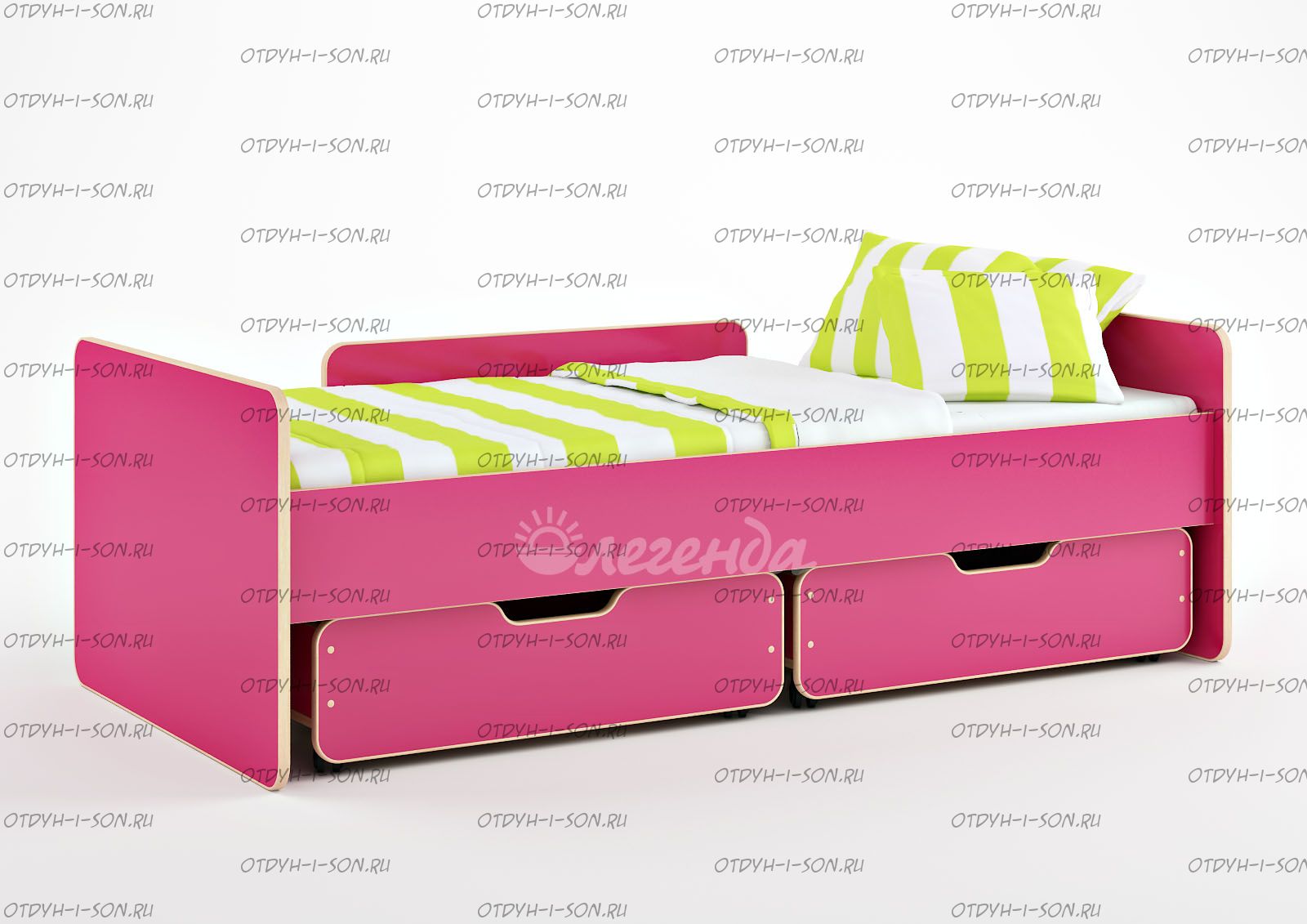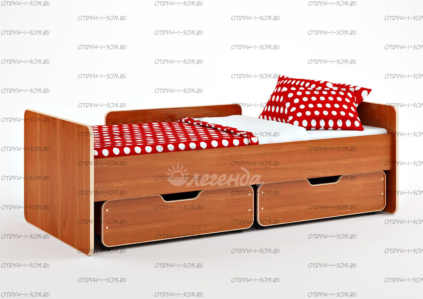 Кровать Легенда-14.1 от ООО "Детская мебель" Комплектация: Кровать Л-14 Ящик выкатной Л-01-2 шт., габариты каждого ящика (Ш*Г*В) 840*584*236 мм. Характеристики: Размер спального места: 80Х180см. Габариты (ШхГхВ): 1842*900*600 мм. Материал: ЛДСП Вес: 59 кг. Объем: 0,11 м3 Складская программа Цвета : венге светлый, венге темный, голубой, розовый, оранжевый, лайм, ольха, белый