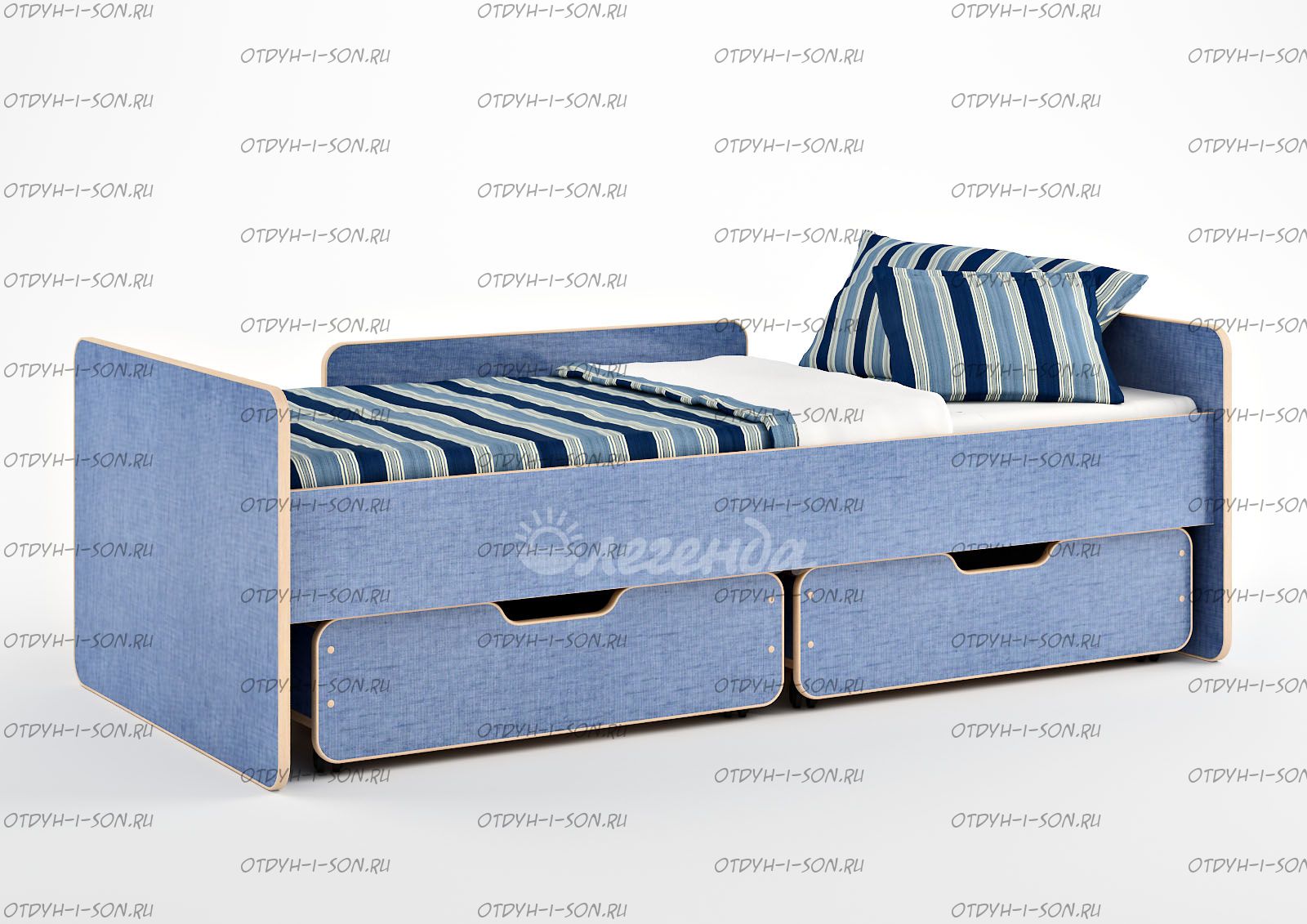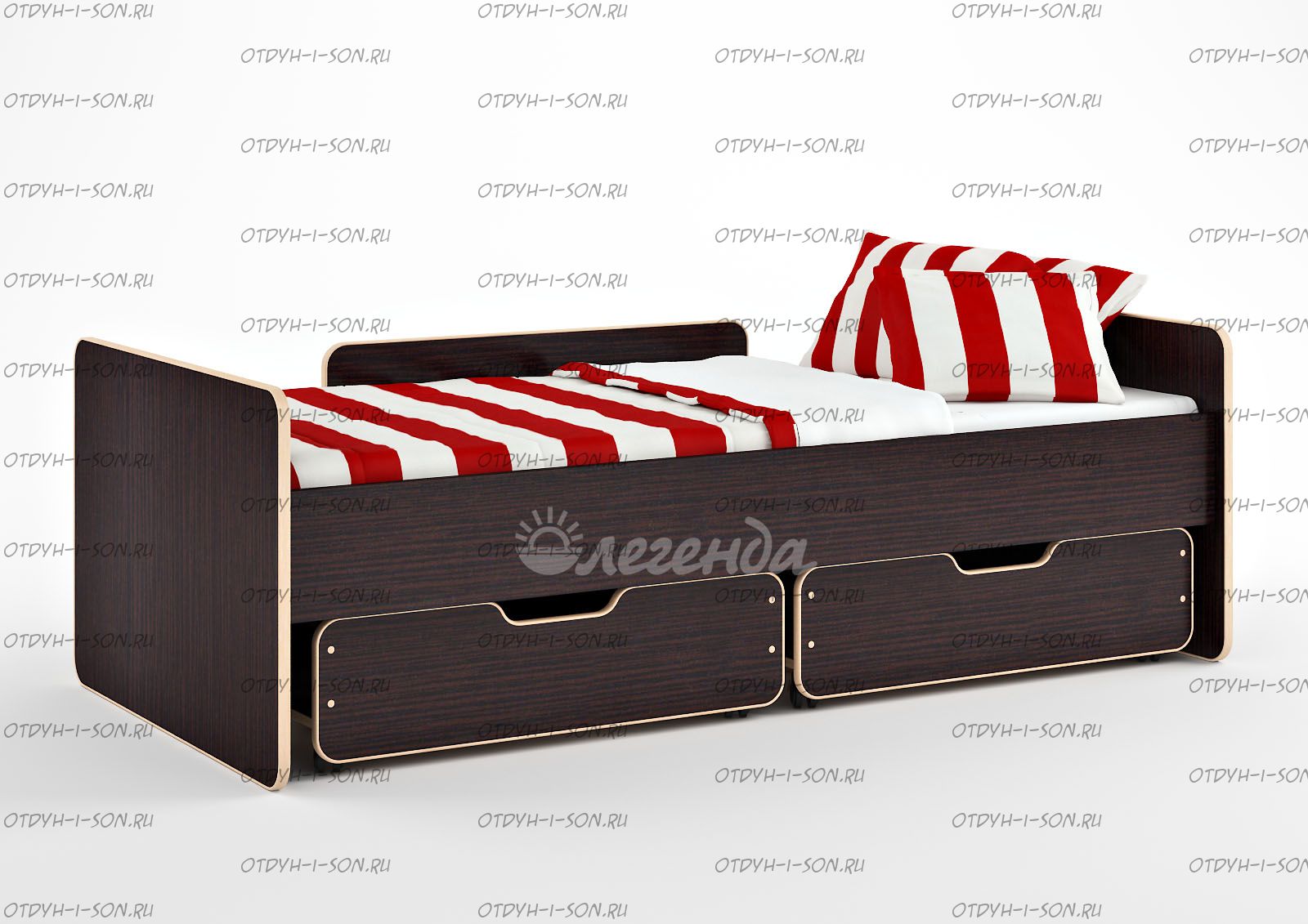 Кровать Легенда-14.1 от ООО "Детская мебель" Комплектация: Кровать Л-14 Ящик выкатной Л-01-2 шт., габариты каждого ящика (Ш*Г*В) 840*584*236 мм. Характеристики: Размер спального места: 80Х180см. Габариты (ШхГхВ): 1842*900*600 мм. Материал: ЛДСП Вес: 59 кг. Объем: 0,11 м3 Складская программа Цвета : венге светлый, венге темный, голубой, розовый, оранжевый, лайм, ольха, белый