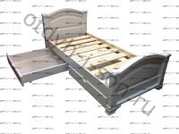 Выкатные ящики не закрепляются в кровати и поэтому могут выполняться открыванием в любую из сторон кровати. Ламельные основания от фабрики ВМК Шале изготавливаются из гнутых ламелей в металлическом основании (4 ножки).