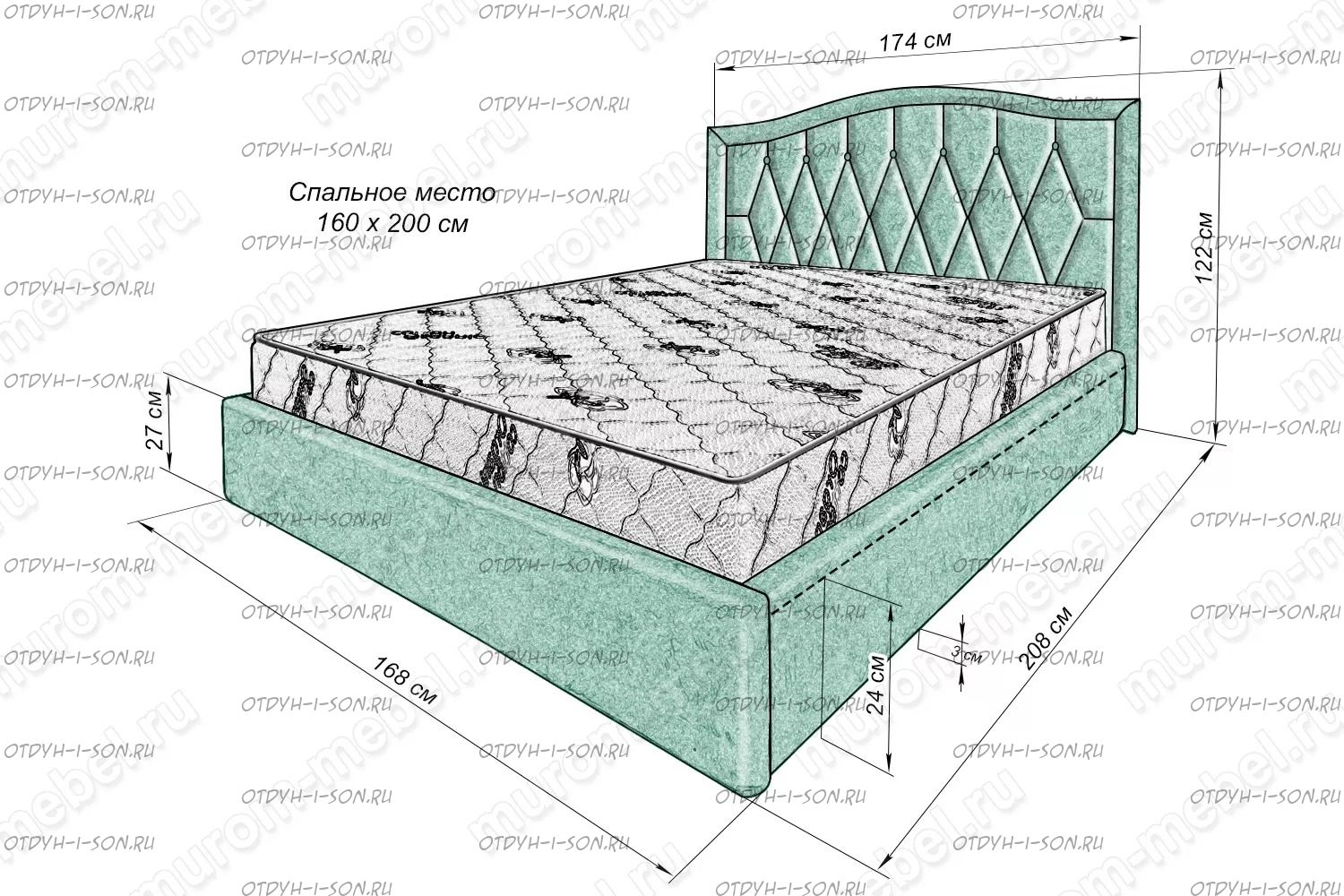 | Внимание | Увеличение высоты спинки: каждые +10 см. - 600 руб. |