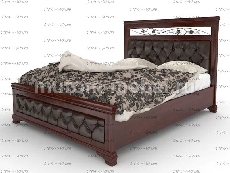 Кровать Лира с мягкой вставкой и ковкой, полностью массив дерева, без фанеры Производство Владимирской мебельной фабрики, кровать доставляется напрямую от производителя, самовывоза нет. Характеристики: Размер спального места: 80х190/195/200, 90х190/195/200, 120х190/195/200, 140х190/195/200, 160х190/195/200, 180х190/195/200, 200х190/195/200 см. Размер спального места: Любая ширина или длина спального места (любая длина по спальному месту до 200 см. без доплаты) Комбинированная кровать: Массив дерева и вставки из экологически чистой мебельной фанеры Спинка в изголовье имеет мягкую вставку и элементы ковки Габариты кроватей: Высота днища кроватей: Основание кровати: Ламельное основание: да, в комплекте Подкроватные ящики: за дополнительную плату Ящики изготавливаются на колесиках и не прикрепляются к кровати, поэтому могут устанавливаться "лицом" к любой из боковых сторон кровати. Высота спинки в изголовье кровати: 122 см Высота спинки в изножье кровати: 41 см Высота от пола до спального места: 26 см. Высота от пола до царги: 20 см. Ширина царги - 16 см., из них 10 см. составляет бортик, который держит матрас, остальные 6 см. под спальным местом, закрывают собой фурнитуру Основание кровати: подматрасники, ламельное основание - за дополнительную плату Крепления кровати: В базовом варианте с тыльной стороны ящиков декоративной планки не предусмотрено. Вес: 57кг. Объем: 0,3 м3 Любые размеры, в том числе и нестандартные Цвет: венге 1, венге 2, венге 3, венге 4, венге тон 2, коричневый тон 2, коричневый 1, коричневый 2, коричневый 3, коричневый 4, красно-коричневый тон 2, красно-коричневый 1, красно-коричневый 2, красно-коричневый 3, красно-коричневый 4, лак Изготовление в белом цвете или слоновая кость плюс 25%