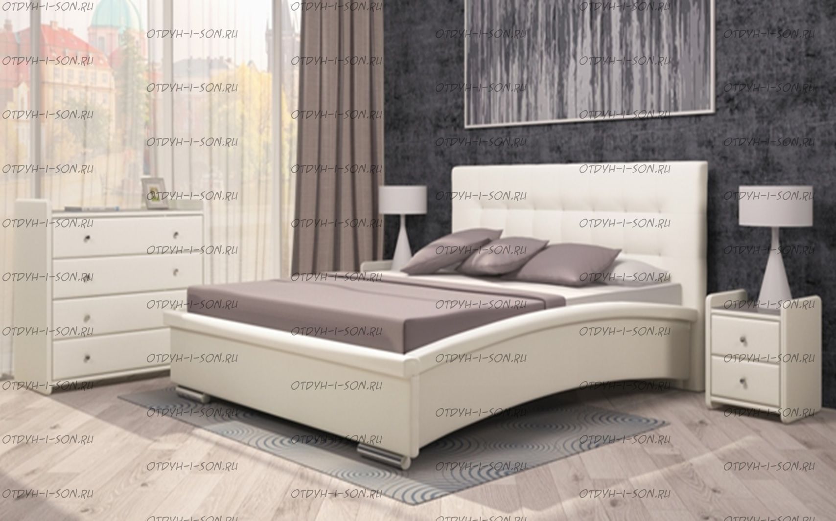 Кровать Луиза с подъемным механизмом Характеристики: Размер: 140Х200, 160Х200, 180х200см. Внешние габариты (ШхДхВ): 1560x2170x1080, 1760x2170x1080, 1760x2170x1080 мм Каркас/корпус: ЛДСП Фасад: гнутая ПСП, эко кожа Высота изголовья: по запросу Высота днища: по запросу Нестандарт: нет Вес: 65 кг Объем: 0,7 м3 Кол-во уп-к: 4 шт. Цвета. Легенда Вайт, Реал Лайт Беж Комплектация: Кровать Ламельное основание: да, в комплетке Подъемный механизм: да Ящик для белья: да. Матрас: докупается отдельно