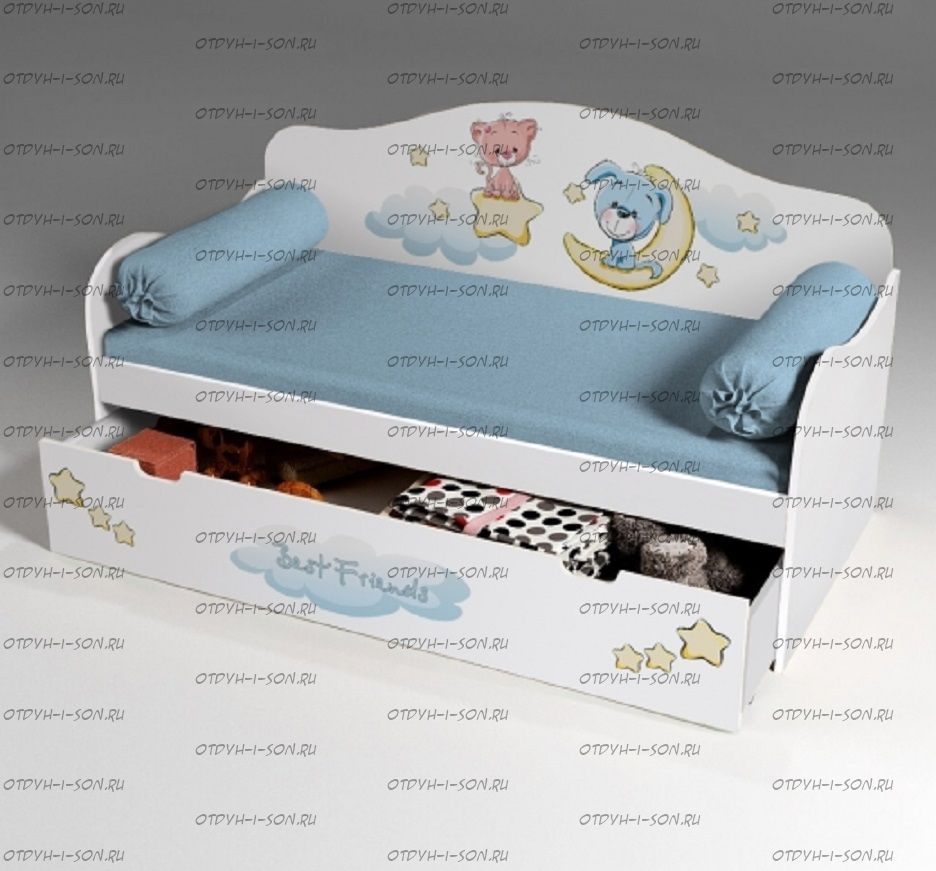 Кровать Лучшие друзья, арт. 40006 (70х160). Детская кровать Лучшие друзья, арт. 40006 - модуль для детей в возрасте от 3-х лет, в котором предусмотрены выкатной ящик размером Д1560хШ668хВ150мм. (есть колесики и прорези вместо ручек для открывания) и уютное спальное место с размером под матрац 160х70 см. В качестве основания спального места - лист дсп.