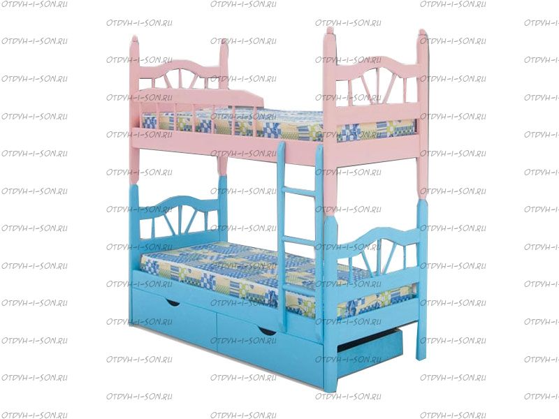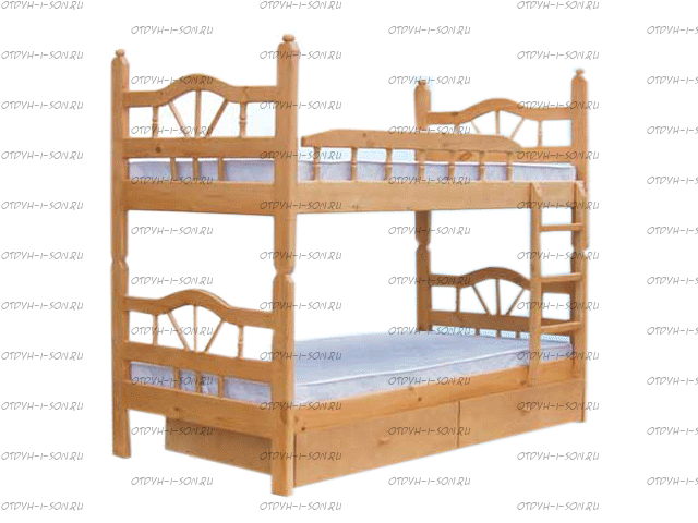 Двухъярусная кровать Луч-2 изготавливается из массива сосны и выполняется в различных цветовых решениях. Выкатные ящики делают кровать еще более функциональной. Они не закрепляются в кровати.