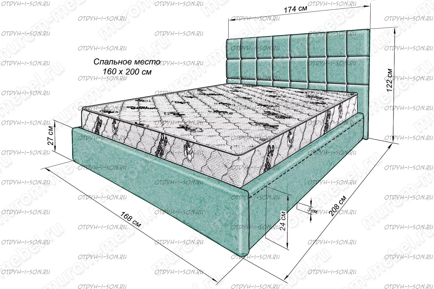 | Внимание | Увеличение высоты спинки: каждые +10 см. - 600 руб. |