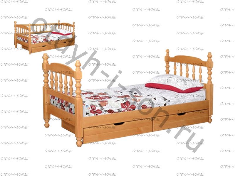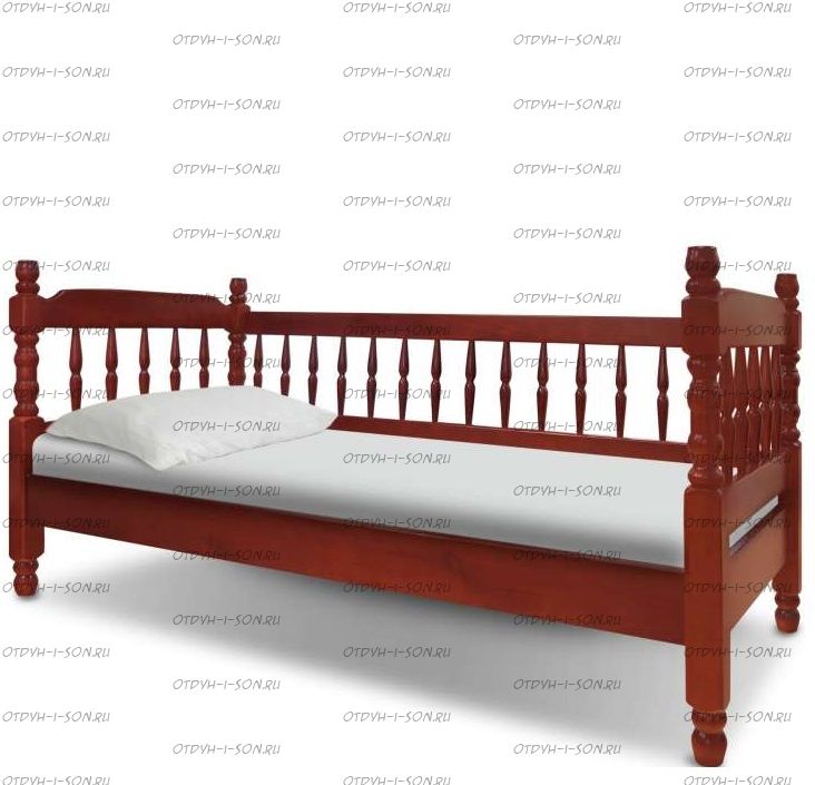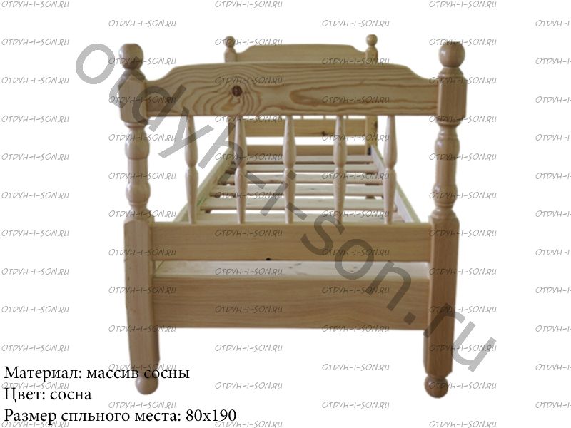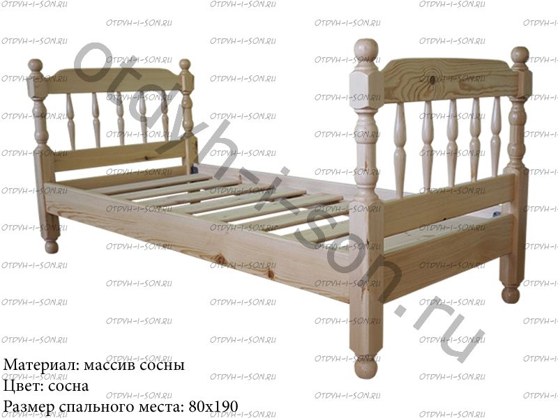 Кровать изготавливается из массива сосны. Эта модель может быть выполнена как односпальная или двуспальная кровать. Размеры кроватей, указанные на нашем сайте, - это размеры спального места (матраса).