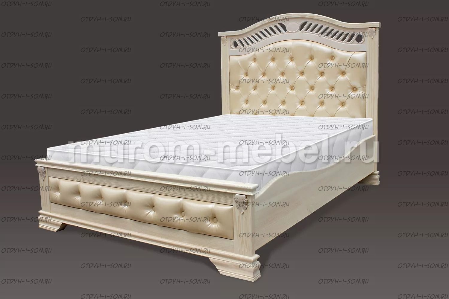 Кровать Оливия Элит с каретной стяжкой Характеристики: Размер спального места: 80х190/195/200, 90х190/195/200, 120х190/195/200, 140х190/195/200, 160х190/195/200, 180х190/195/200, 200х190/195/200 см. Комбинированная кровать: Массив дерева Габариты кроватей: Высота днища кроватей: Высота от пола до спального места: 22,5 см. Высота от пола до царги: см. Ширина царги - см., из них 10 см. составляет бортик, который держит матрас, остальные 6 см. под спальным местом, закрывают собой фурнитуру Основание кровати: да, в комплекте Подкроватные ящики: за дополнительную плату Ящики изготавливаются на колесиках и не прикрепляются к кровати, поэтому могут устанавливаться "лицом" к любой из боковых сторон кровати. Высота спинки в изголовье кровати: 151,5 см, ножная 43 см Крепления кровати: В базовом варианте с тыльной стороны ящиков декоративной планки не предусмотрено. Вес: 45-60кг. Любые размеры, в том числе и нестандартные Цвет: венге 1, венге 2, венге 3, венге 4, венге тон 2, коричневый тон 2, коричневый 1, коричневый 2, коричневый 3, коричневый 4, красно-коричневый тон 2, красно-коричневый 1, красно-коричневый 2, красно-коричневый 3, красно-коричневый 4, лак Изготовление из массива березы плюс 30% Изготовление в белом цвете или слоновая кость плюс 20%