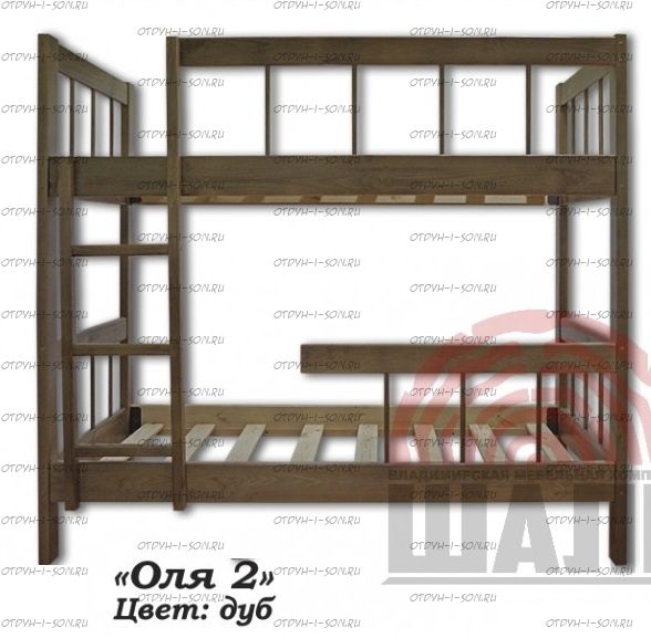 Кровать двухъярусная Оля-2 от фабрики ВМК Шале изготавливается из массива сосны с последующим покрытием Renner (Италия). Размеры кроватей фабрики ВМК Шале, указанные на нашем сайте, - это размеры спального места (матраса).