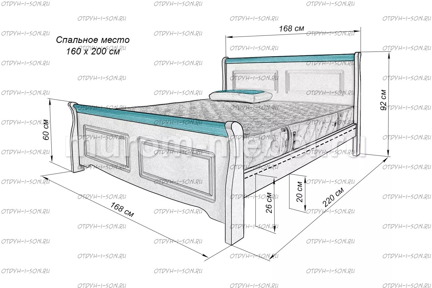 Кровать Прованс Скай Характеристики: Размер спального места: 80х190/195/200, 90х190/195/200, 120х190/195/200, 140х190/195/200, 160х190/195/200, 180х190/195/200, 200х190/195/200 см. Комбинированная кровать: Массив дерева Габариты кроватей: Высота днища кроватей: Высота от пола до спального места: 26 см. Высота от пола до царги: 20 см. Ширина царги - см., из них 10 см. составляет бортик, который держит матрас, остальные 6 см. под спальным местом, закрывают собой фурнитуру Основание кровати: да, в комплекте Подкроватные ящики: за дополнительную плату Ящики изготавливаются на колесиках и не прикрепляются к кровати, поэтому могут устанавливаться "лицом" к любой из боковых сторон кровати. Высота спинки в изголовье кровати: 92 см, ножная 60 см Крепления кровати: В базовом варианте с тыльной стороны ящиков декоративной планки не предусмотрено. Вес: 45-60кг. Любые размеры, в том числе и нестандартные Цвет: венге 1, венге 2, венге 3, венге 4, венге тон 2, коричневый тон 2, коричневый 1, коричневый 2, коричневый 3, коричневый 4, красно-коричневый тон 2, красно-коричневый 1, красно-коричневый 2, красно-коричневый 3, красно-коричневый 4, лак Изготовление из массива березы плюс 30% Изготовление в белом цвете или слоновая кость плюс 20%