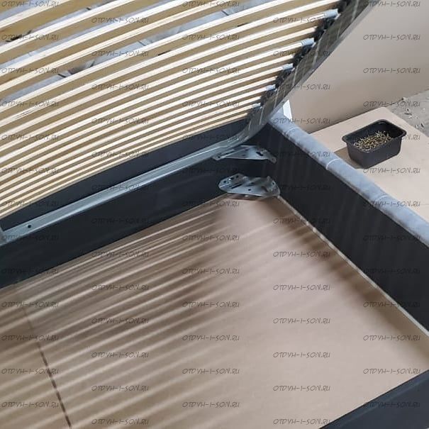 Отделка изголовья кровати - экокожа, боковины кровати выполнены из экокожи.