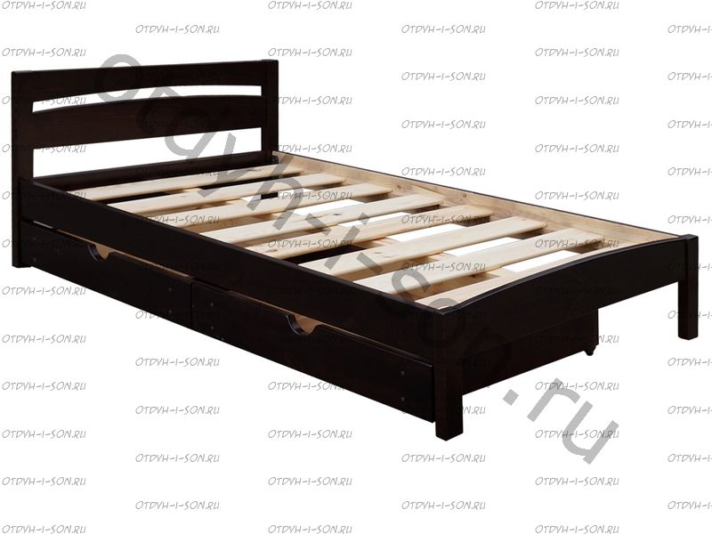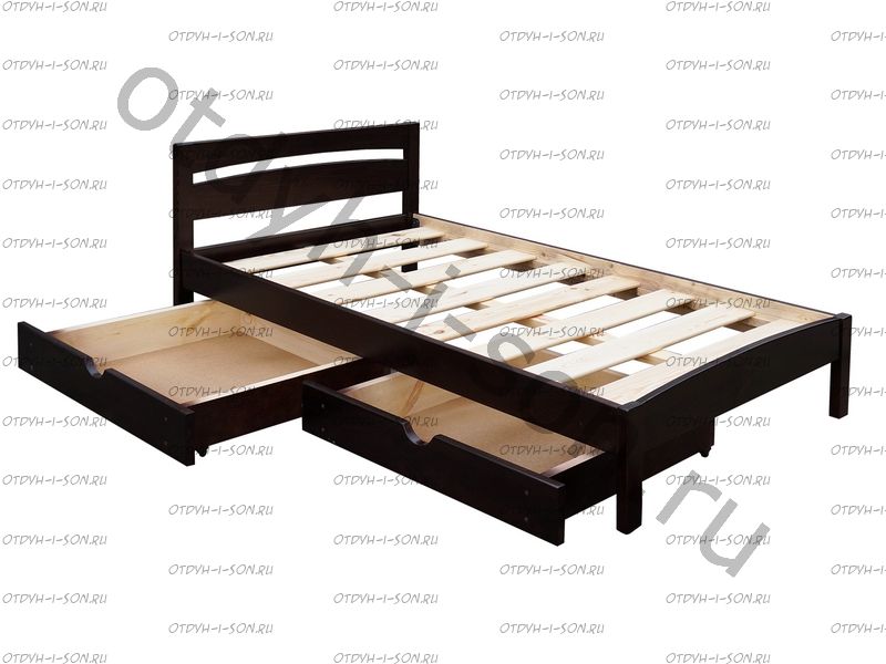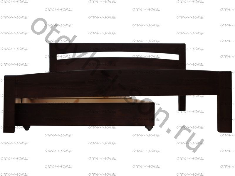 Выкатные ящики не закрепляются в кровати и поэтому могут выполняться открыванием в любую из сторон кровати. Ламельные основания от фабрики ВМК Шале изготавливаются из гнутых ламелей в металлическом основании (4 ножки).