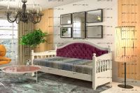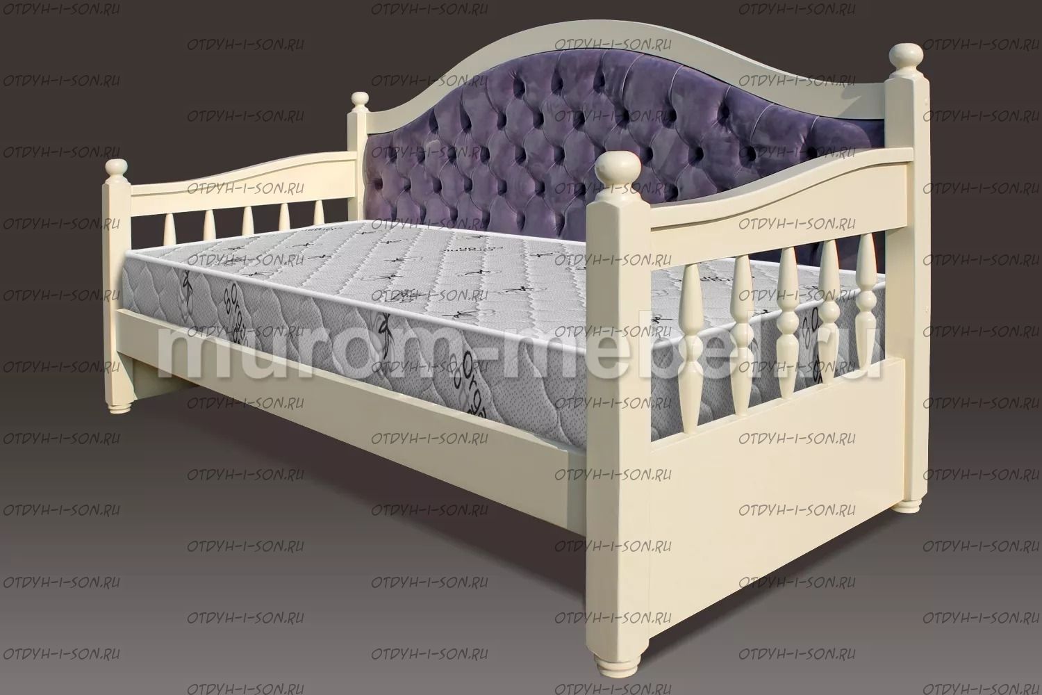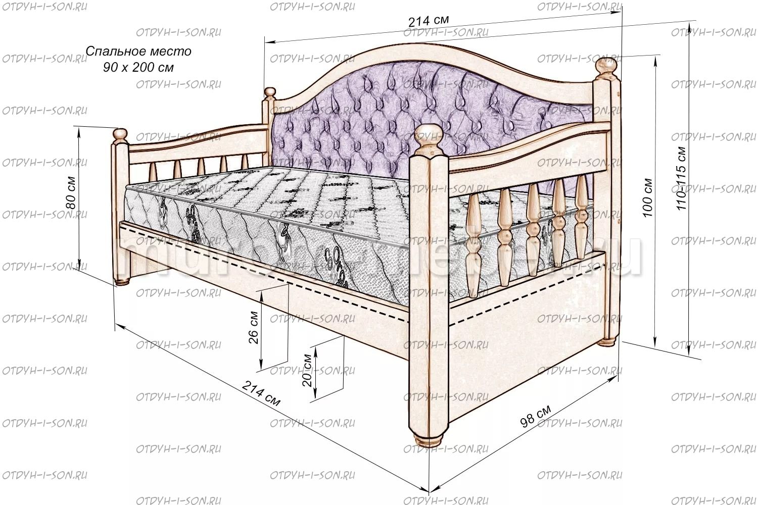 Кровать Ретро Характеристики: Размер спального места: 90х190/195/200 Комбинированная кровать: Массив дерева и вставки из экологически чистой мебельной фанеры Габариты кроватей: Высота днища кроватей: Высота от пола до спального места: 26 см. Высота от пола до царги: 20 см. Ширина царги - см. Основание кровати: да, в комплекте Подкроватные ящики: за дополнительную плату Ящики изготавливаются на колесиках и не прикрепляются к кровати, поэтому могут устанавливаться "лицом" к любой из боковых сторон кровати. Высота спинки в изголовье кровати: 115 см, боковые 80 см Крепления кровати: В базовом варианте с тыльной стороны ящиков декоративной планки не предусмотрено. Вес: 45-60кг. Любые размеры, в том числе и нестандартные Цвет: венге 1, венге 2, венге 3, венге 4, венге тон 2, коричневый тон 2, коричневый 1, коричневый 2, коричневый 3, коричневый 4, красно-коричневый тон 2, красно-коричневый 1, красно-коричневый 2, красно-коричневый 3, красно-коричневый 4, лак Изготовление из массива березы плюс 30% Изготовление в белом цвете или слоновая кость плюс 20%