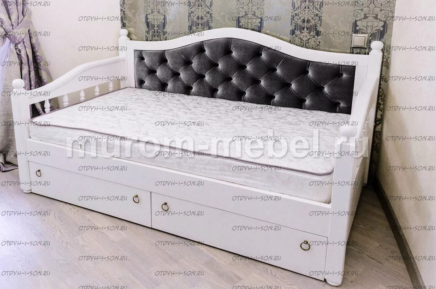 | Внимание | Внимание в базововом варианте подкатные ящики имеют ширину 75 см и глубину 75 см. каждый, даже при длине кровати 200 см. по спальному месту!!! За доплату ящики можно сделать больше размером!! |