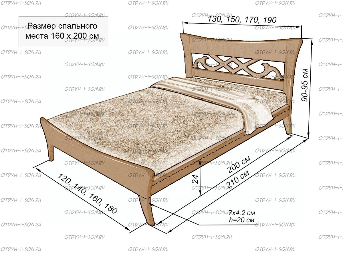 Кровать Сильва Характеристики: Размер спального места: 80х190/195/200, 90х190/195/200, 120х190/195/200, 140х190/195/200, 160х190/195/200, 180х190/195/200 см. Комбинированная кровать: Массив сосны и вставки из экологически чистой мебельной фанеры Спинка в изголовье имеет резные элементы с художественной резьбой Габариты кроватей: Высота днища кроватей: Высота от пола до спального места: 25 см. Высота от пола до царги: 19 см. Высота изножья по краю 49, по центру 43. Матрас утопает в царги (по бокам) на 6 см. Ширина царги - 16 см., из них 10 см. составляет бортик, который держит матрас, остальные 6 см. под спальным местом, закрывают собой фурнитуру Основание кровати: да, в комплекте, ламели гибкие 11 шт по 6 см шириной крепятся к царгам Подкроватные ящики: за дополнительную плату Ящики изготавливаются на колесиках и не прикрепляются к кровати, поэтому могут устанавливаться "лицом" к любой из боковыйх сторон кровати. Высота спинки в изголовье кровати: Крепления кровати: В базовом варианте с тыльной стороны ящиков декоративной планки не предусмотрено. Вес: 45-60кг. Любые размеры, в том числе и нестандартные Цвет: венге 1, венге 2, венге 3, венге 4, венге тон 2, коричневый тон 2, коричневый 1, коричневый 2, коричневый 3, коричневый 4, красно-коричневый тон 2, красно-коричневый 1, красно-коричневый 2, красно-коричневый 3, красно-коричневый 4, лак Изготовление из массива березы плюс 30% Изготовление в белом цвете или слоновая кость плюс 20%