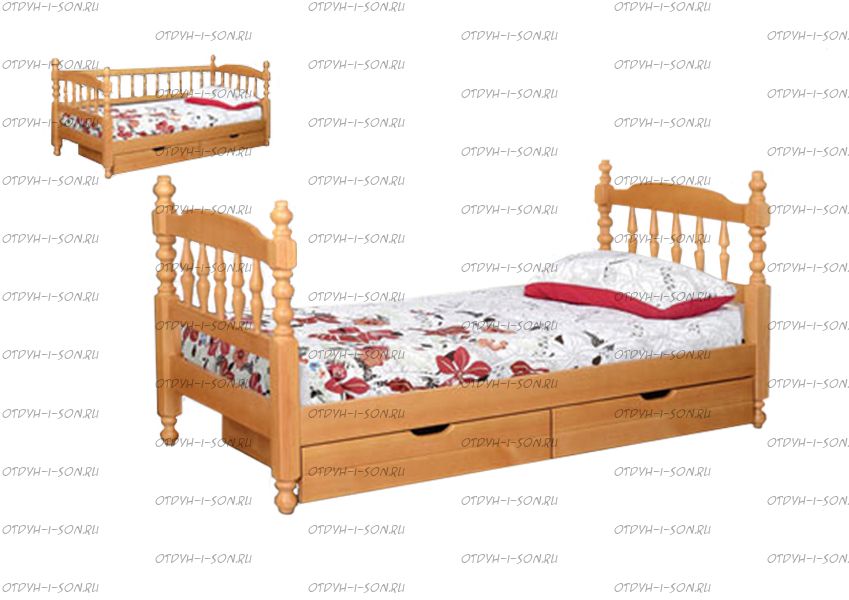 В зависимости от размера комнаты и возраста ребенка возможен выбор различной ширины кровати 70Х190, 80Х190 и 90Х190. Детская кровать из массива Малыш это экологически чистый и эстетически приятный товар, ведь материал исполнения кровати – натуральная древесина сосны, дуба или бука.