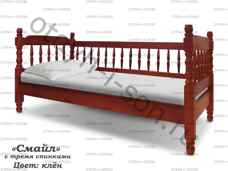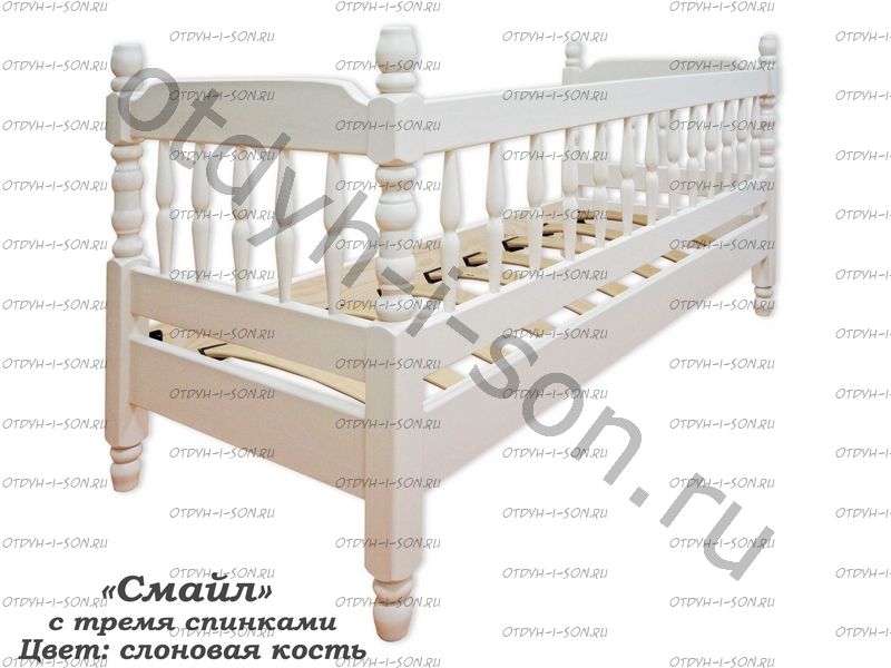 Кровать Смайл с 3-мя спинками изготавливается из массива сосны. Эта модель может быть выполнена как односпальная или двуспальная кровать. Размеры кроватей фабрики ВМК Шале, указанные на нашем сайте, - это размеры спального места (матраса).