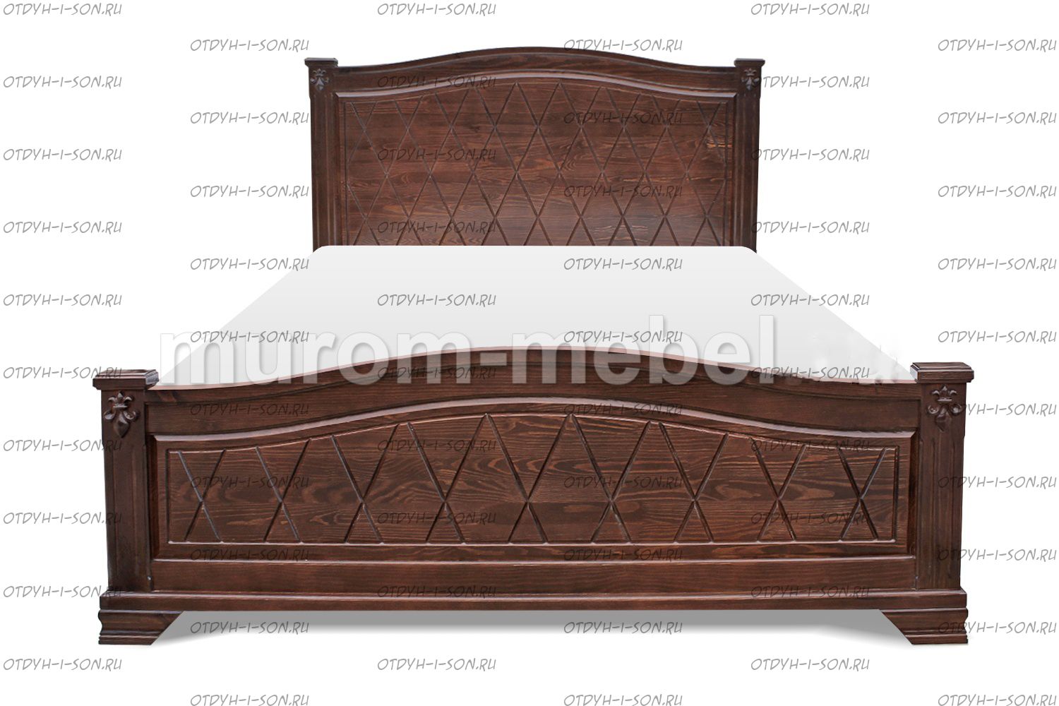 Кровать Стефани Характеристики: Размер спального места: 90х200, 120х200, 140х200, 160х200, 180х200, 200х200 см. Внешние габариты (ШхГхВ): Материал: массив дерева Цвета: венге 1, венге 2, венге 3, венге 4, венге тон 2, коричневый тон 2, коричневый 1, коричневый 2, коричневый 3, коричневый 4, красно-коричневый тон 2, красно-коричневый 1, красно-коричневый 2, красно-коричневый 3, красно-коричневый 4, лак Стоимость в цветах Белая эмаль, Слоновая кость, Выбеленный дуб, Венге перламутровый и Красный +25% к стоимости изделия.