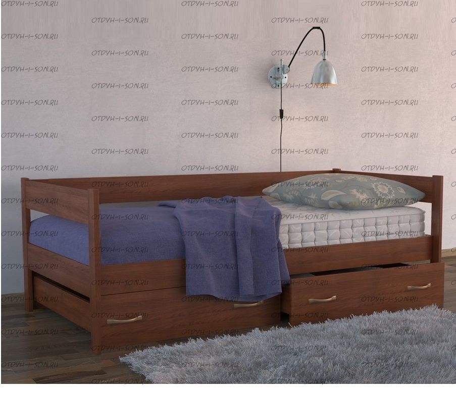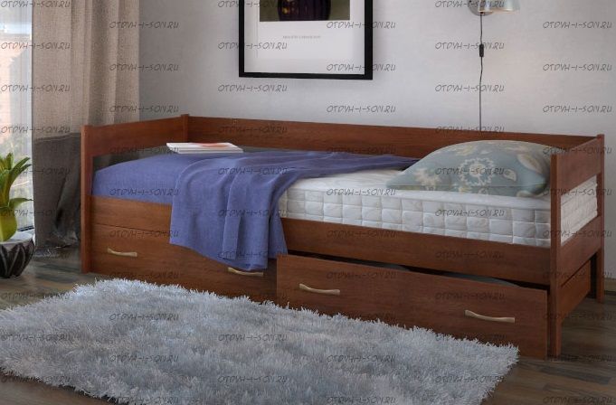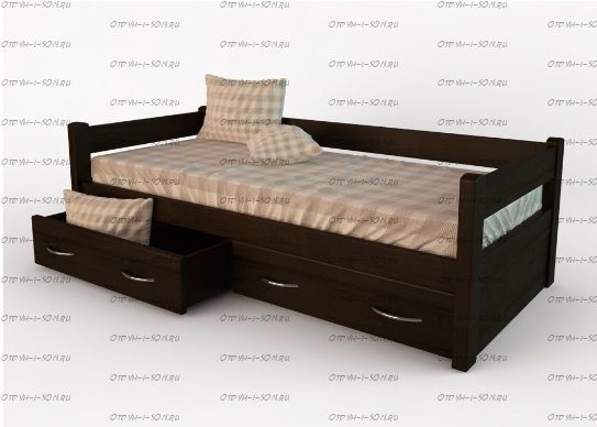 Кровать Тахта Массив DreamLine компактная, удобная и практичная изготавливается из массива бука и ясеня. Кровать снабжена двумя выдвижными ящиками. Ящики очень практичны и вместительны, создают дополнительные места хранения вещей и при этом не загромождают пространство. С трех сторон кровати располагается декоративная спинка.