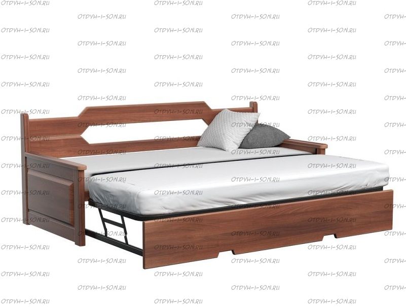 Кровать Тахта-трансформер Неаполь Массив DreamLine Характеристики: Размер спального места в сложенном состоянии 80х200 см, в разложенном 160х200 Внешние габариты: ширина +8,5 см, длина +12 см Размер боковых поручней: 70 см Высота изголовья: 86,5 см Высота спального места: 32,5 см Механизм трансформации включает в себя 2 ортопедических основания Дрим Выкатные подкроватные ящики докупаются отдельно Материал: массив бука, массив ясеня Цвет массива бука: слоновая кость, груша, орех, орех патина, орех мокко,старая вишня, красное дерево, каштан, венге, олива, серый. Цвет массива ясеня: белый, белый серая патина, белый золотая патина, слоновая кость, беленый дуб, дуб сономо, натуральный ясень,натуральный дуб, груша, пинотекс, дуб золотой, орех, орех мокко, старая вишня, красное дерево, каштан, венге серебряная патина, венге, олива, серый. За цвета из массива ясеня: натуральный ясень, груша, беленый дуб – прибавляется 10% к стоимости, белый золотая патина, венге серебряная патина, белый серая патина – 15% За цвета из массива бука: груша - прибавляется 10% к стоимости, орех патина - 15%.