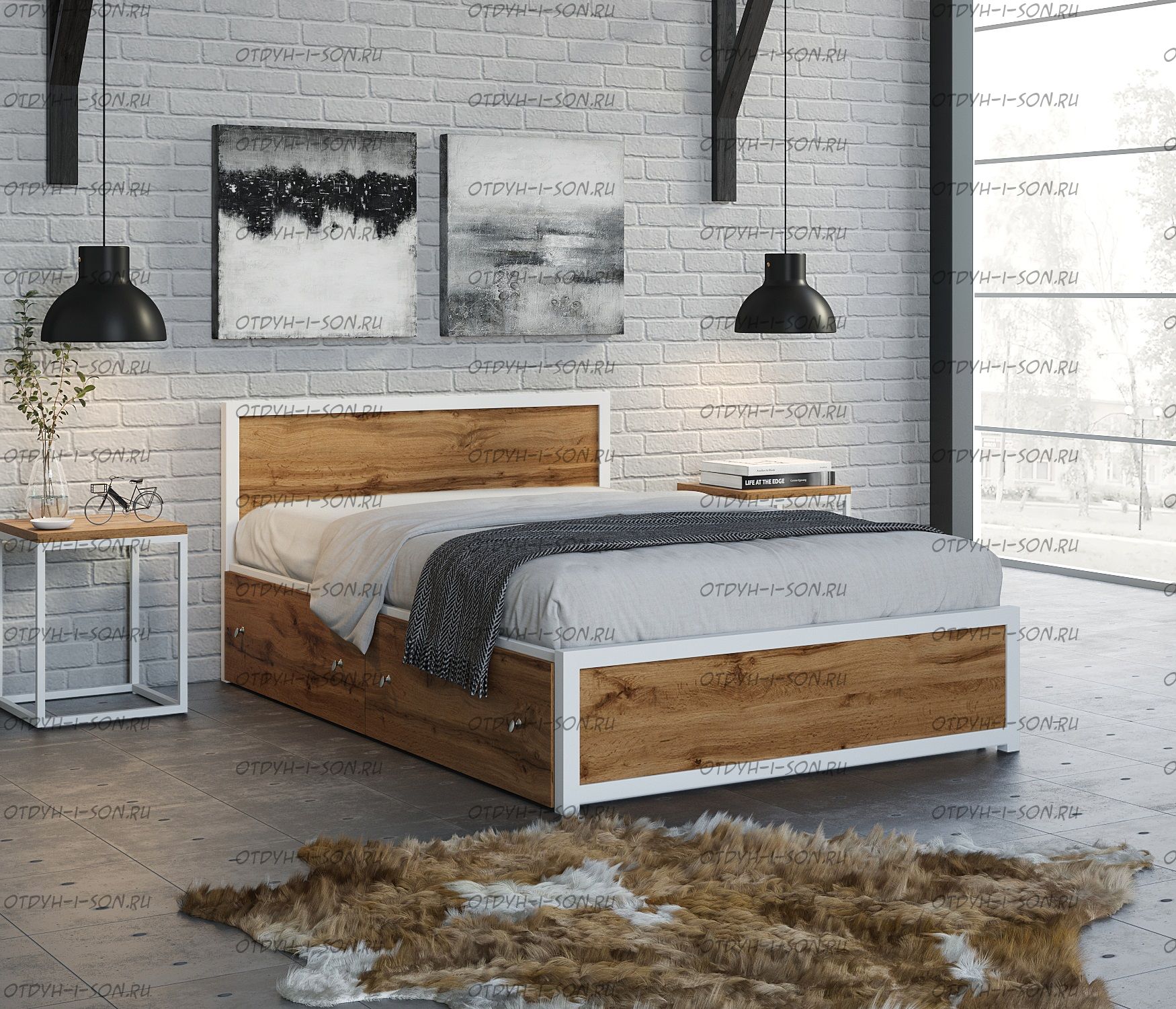 Кровать Титан Лофт 120 Характеристики: Внешние габариты (ШхДхВ): 126 х 198 х 80 см.