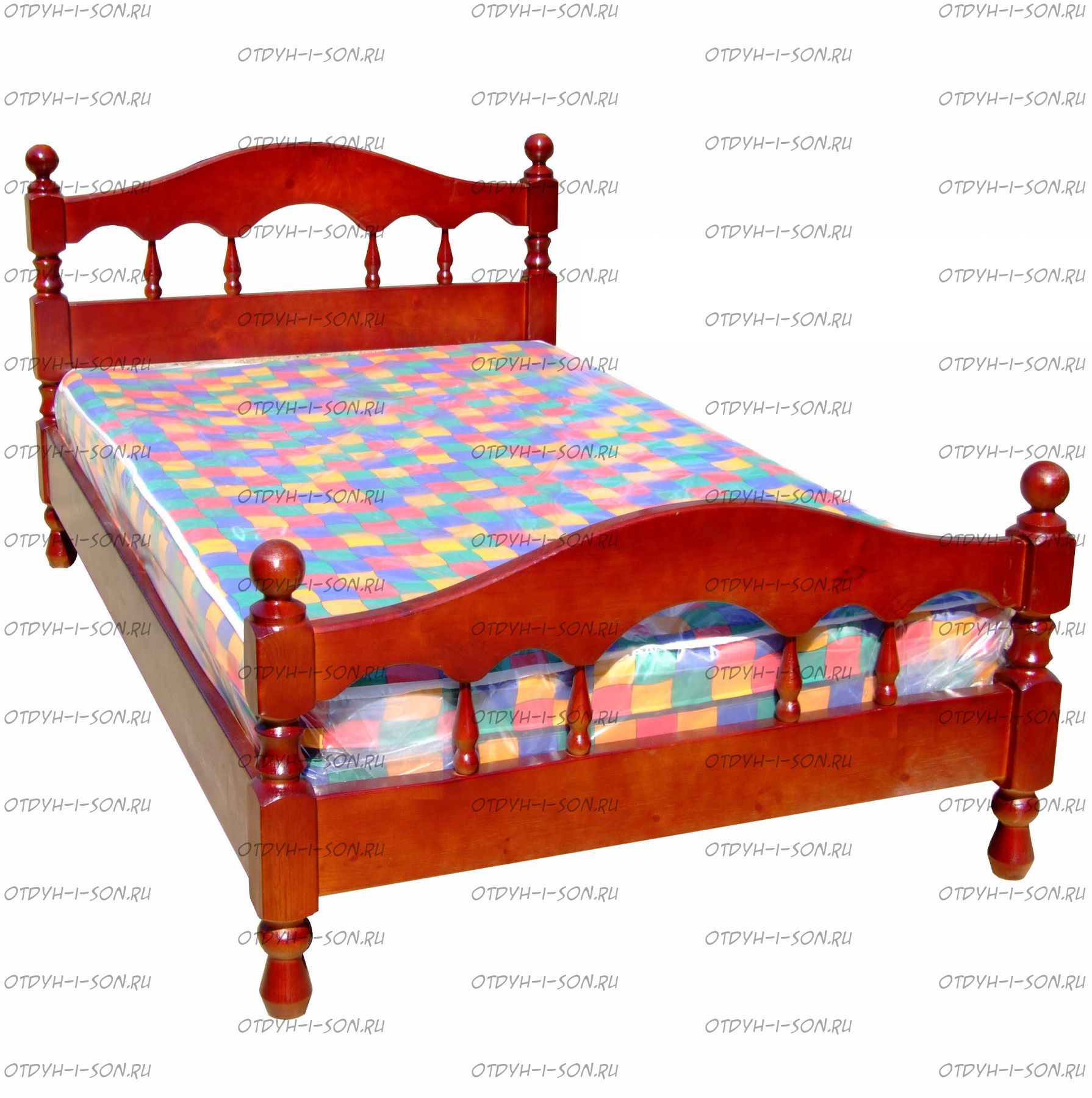 Кровать Точенка Волна Характеристики: Размер спального места: 80х190/195/200, 90х190/195/200, 120х190/195/200, 140х190/195/200, 160х190/195/200, 180х190/195/200, 200х190/195/200 см. Комбинированная кровать: Массив сосны и вставки из экологически чистой мебельной фанеры Спинка в изголовье имеет резные элементы с художественной резьбой Габариты кроватей: Высота днища кроватей: Высота от пола до спального места: 25 см. Высота от пола до царги: 19 см. Ширина царги - 16 см., из них 10 см. составляет бортик, который держит матрас, остальные 6 см. под спальным местом, закрывают собой фурнитуру Основание кровати: да, в комплекте Подкроватные ящики: за дополнительную плату Ящики изготавливаются на колесиках и не прикрепляются к кровати, поэтому могут устанавливаться "лицом" к любой из боковыйх сторон кровати. Высота спинки в изголовье кровати: Крепления кровати: В базовом варианте с тыльной стороны ящиков декоративной планки не предусмотрено. Вес: 45-60кг. Любые размеры, в том числе и нестандартные Цвет: венге 1, венге 2, венге 3, венге 4, венге тон 2, коричневый тон 2, коричневый 1, коричневый 2, коричневый 3, коричневый 4, красно-коричневый тон 2, красно-коричневый 1, красно-коричневый 2, красно-коричневый 3, красно-коричневый 4, лак Изготовление из массива березы плюс 30% Изготовление в белом цвете или слоновая кость плюс 20%