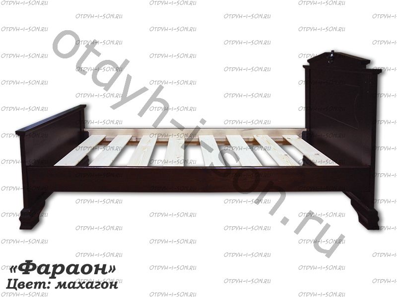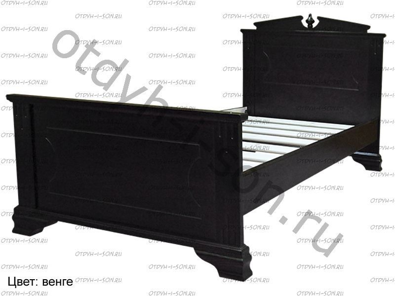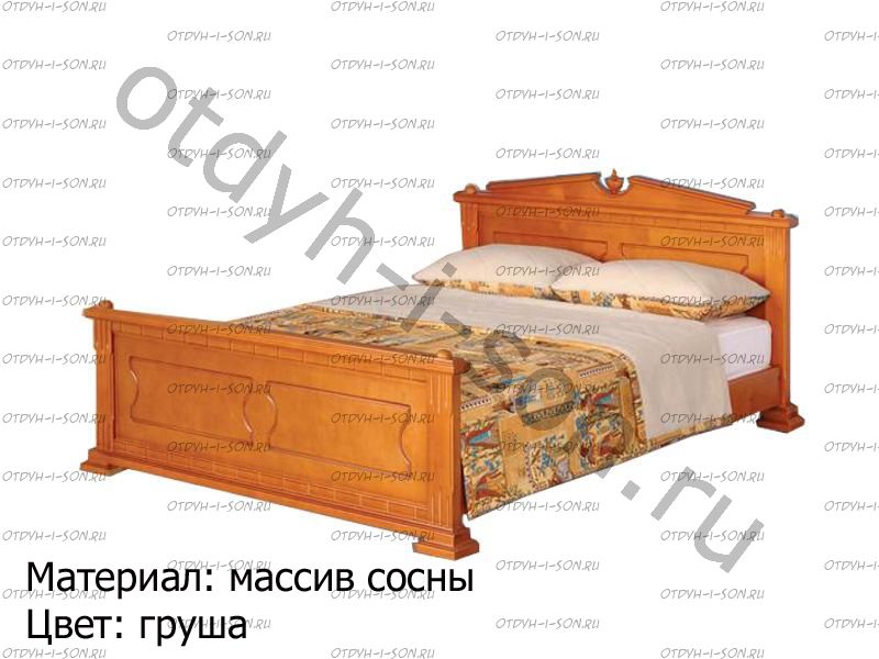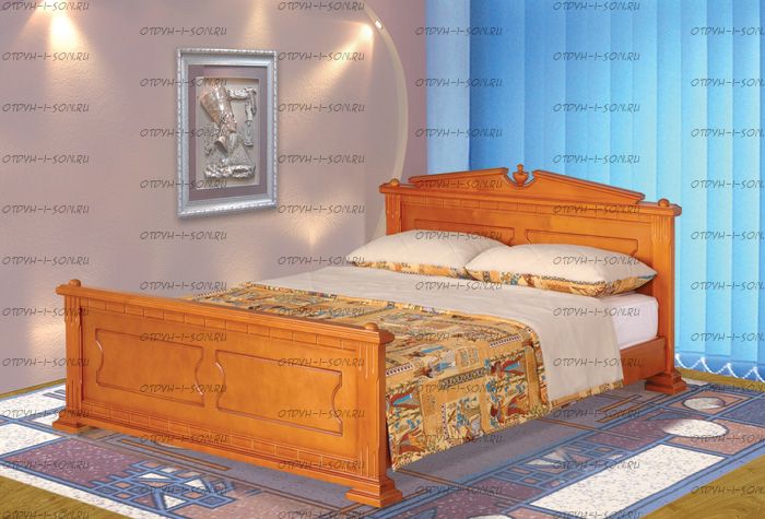 Кровать Фараон (ВМК Шале) Характеристики: Размер спального места на выбор: 90Х190, 90Х200, 120Х190, 120Х200, 140Х190, 140Х200, 160Х190, 160Х200, 180Х190, 180Х200 см. Габаритные размеры кровати: +8 см. к ширине, +12 см. к длине. (спального места) Высота изголовья 100 см. (уточняйте у оператора) Высота изножья: 55 см. (уточняйте у оператора) Высота от пола до царги: 20 см. (уточняйте у оператора) Высота царги: 14 см. (уточняйте у оператора) Глубина утапливания матраса: 5-6 см. (уточняйте у оператора) Тип основания: Ламельное основание, встроенное в царги (боковины) кровати, изготавливается из гнутых ламелей: входит в стоимость. От размера 120, добавляется 5-ая ножка В кроватях шириной 120 см. и более используется центральная опора (средник) из массива. Подкроватные ящики: за дополнительную плату 2 или 4 ящика (в зависимости от ширины кровати) Материалы: сосна и мебельная фанера. Также возможно изготовление мебели из массива дуба, бука, ясеня. Возможно изготовление кроватей любых габаритных размеров. Крепление узлов кровати: специальные кроватные стяжки, саморезы, мебельный крепеж, пластиковые заглушки в цвет изделия. Боковые царги кровати закрепляются к спинкам при помощи надежных кроватных стяжек, которые не видны снаружи. Вес в упаковке: 50 кг +/- 10 кг Объём в упаковке: 1,1 м3 +/- 0,1 м3; Кол-во мест: 3 шт (Уточняйте, параметры зависят от размеров спального места) Цвет: орех, бук, венге, груша, дуб, каштан, клен, красное дерево, махагон, ольха, сосна, белый (эмаль), слоновая кость (эмаль)