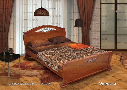 Кровать Эврос-2 (ВМК Шале) Характеристики: Размер спального места на выбор: 90Х190, 90Х200, 120Х190, 120Х200, 140Х190, 140Х200, 160Х190, 160Х200, 180Х190, 180Х200 см. Габаритные размеры кровати: +14 см. к ширине, +14 см. к длине. (спального места) Высота изголовья 76 см. (уточняйте у оператора) Высота изножья: 55 см. (уточняйте у оператора) Высота от пола до царги: 20 см. (уточняйте у оператора) Высота царги: 14 см. (уточняйте у оператора) Глубина утапливания матраса: 5-6 см. (уточняйте у оператора) Тип основания: Ламельное основание, встроенное в царги (боковины) кровати, изготавливается из гнутых ламелей: входит в стоимость. От размера 120, добавляется 5-ая ножка В кроватях шириной 120 см. и более используется центральная опора (средник) из массива. Подкроватные ящики: за дополнительную плату 2 или 4 ящика (в зависимости от ширины кровати) Материалы: сосна и мебельная фанера. Также возможно изготовление мебели из массива дуба, бука, ясеня. Возможно изготовление кроватей любых габаритных размеров. Крепление узлов кровати: специальные кроватные стяжки, саморезы, мебельный крепеж, пластиковые заглушки в цвет изделия. Боковые царги кровати закрепляются к спинкам при помощи надежных кроватных стяжек, которые не видны снаружи. Вес в упаковке: 50 кг +/- 10 кг Объём в упаковке: 1,1 м3 +/- 0,5 м3; Кол-во мест: 3 шт (Уточняйте, параметры зависят от размеров спального места) Цвет: орех, бук, венге, груша, дуб, каштан, клен, красное дерево, махагон, ольха, сосна, белый (эмаль), слоновая кость (эмаль)